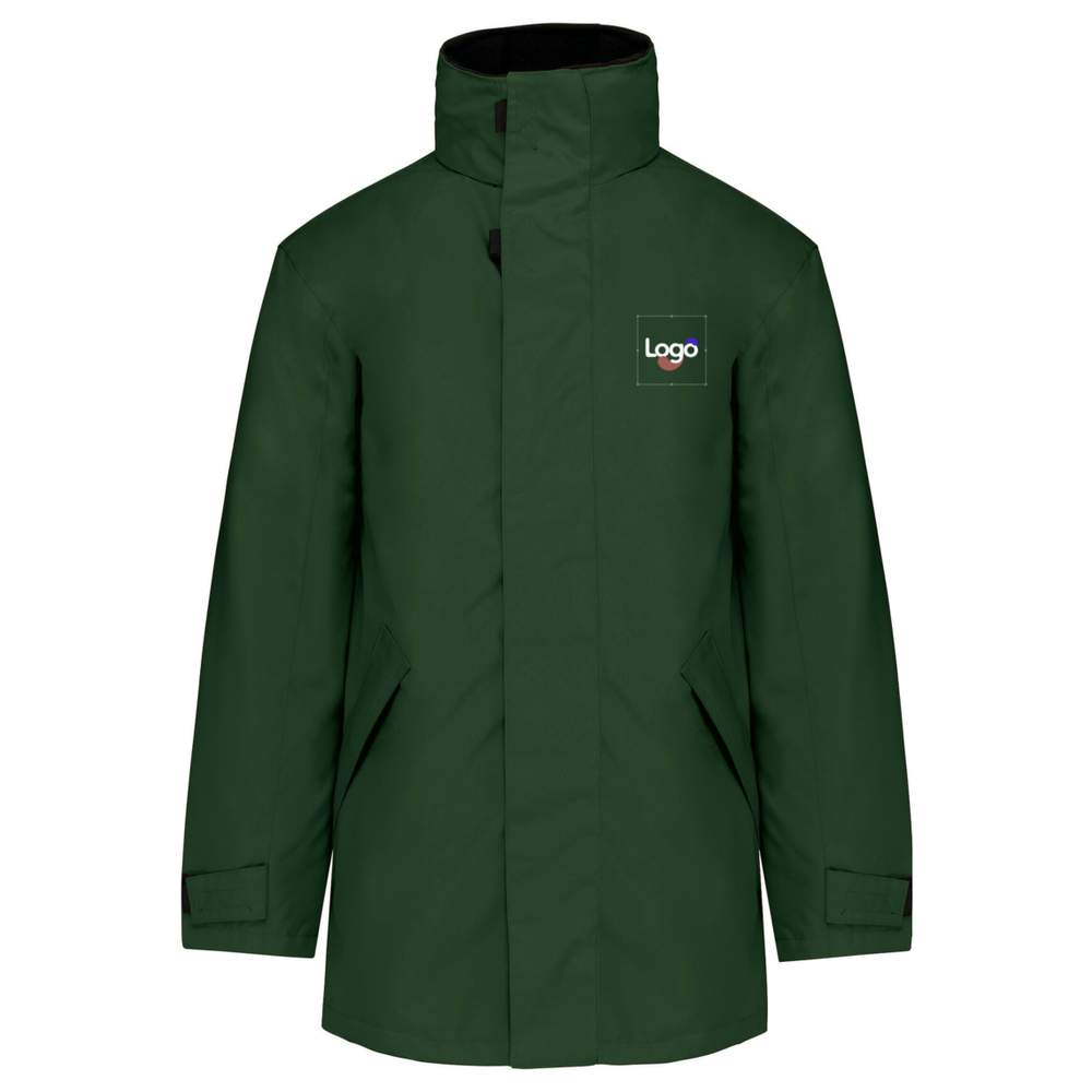 Gevulde parkajacket in polyester Oxford, biedt comfort en bescherming. Met een rits met klitband en onzichtbare knoppen. De jas heeft twee buitenzakken met ritsen, twee binnenzakken en een zakje voor uw mobiele telefoon. De ingebouwde muts en het stoffige binnenste bieden extra bescherming. Een binnenrits maakt het mogelijk om gemakkelijk te personaliseren door het borduren of afdrukken van uw logo.