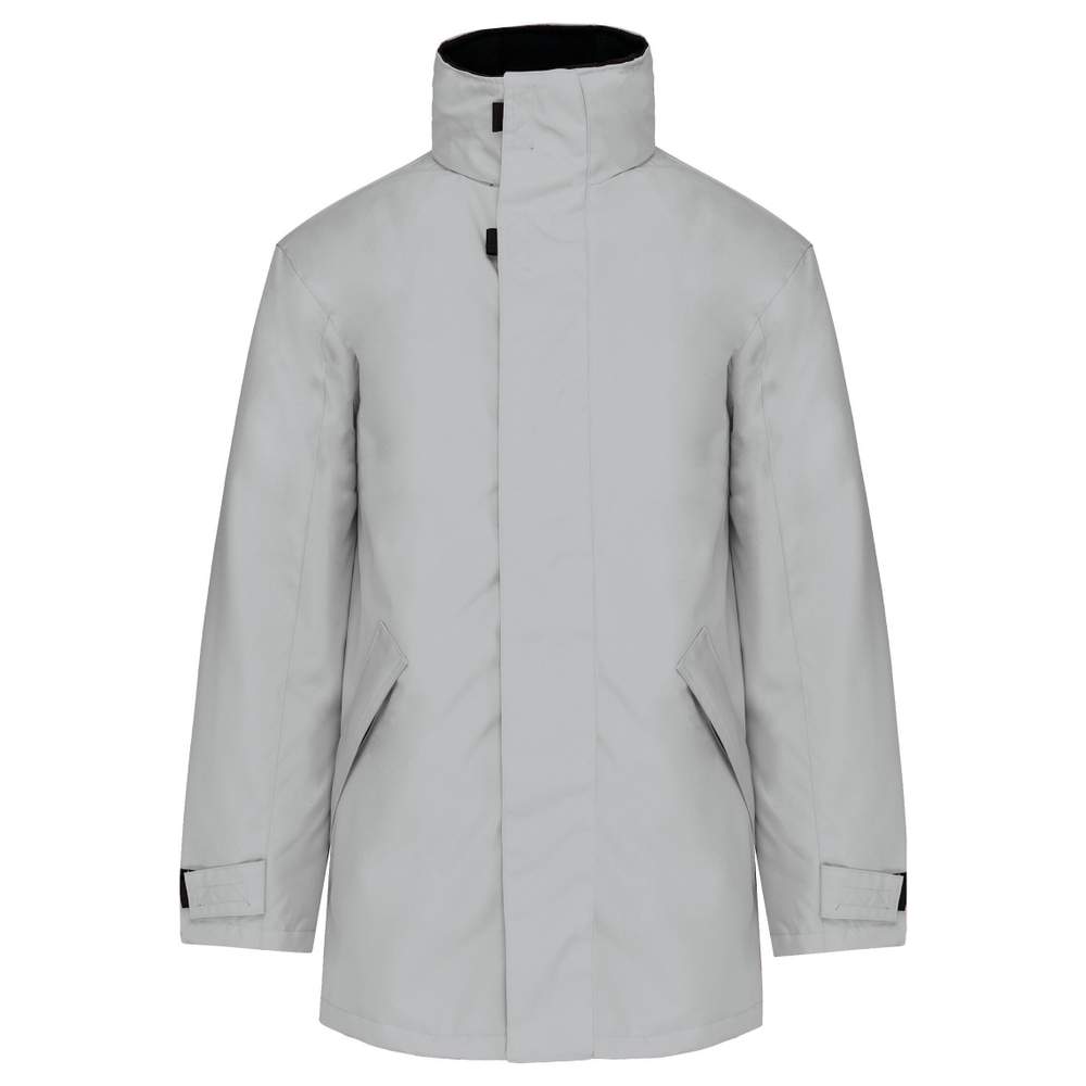 Deze polyester parka jas biedt een praktische en comfortabele ontwerp. Het heeft een matelassée inleg voor een verbeterde thermische isolatie. De ritsluiting is aangevuld met een klitband en onzichtbare drukknopen. Het heeft twee buitenzakken met rits, twee binnenzakken en een specifieke zak voor een mobiele telefoon. De kap is geïntegreerd in de kraag, en deze laatste is geflanseerd met fleece voor extra comfort. Een binnenrits maakt personalisatie van het kledingstuk mogelijk.