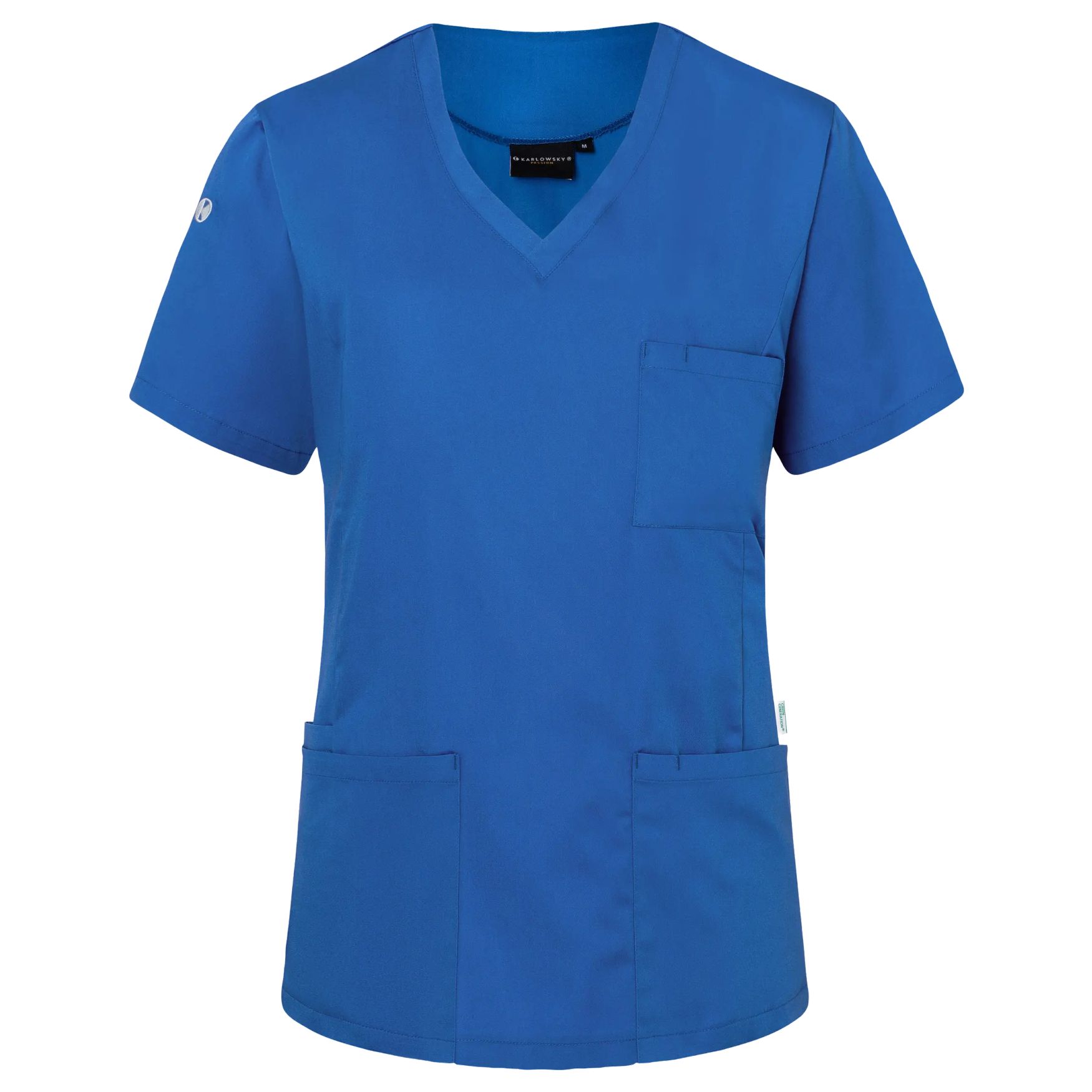 De Essentiële Damestuniek is een tuniekblouse met korte mouwen, V-hals en een licht getailleerde pasvorm. Gebruik geschikt voor de sectoren zorg en schoonheid.