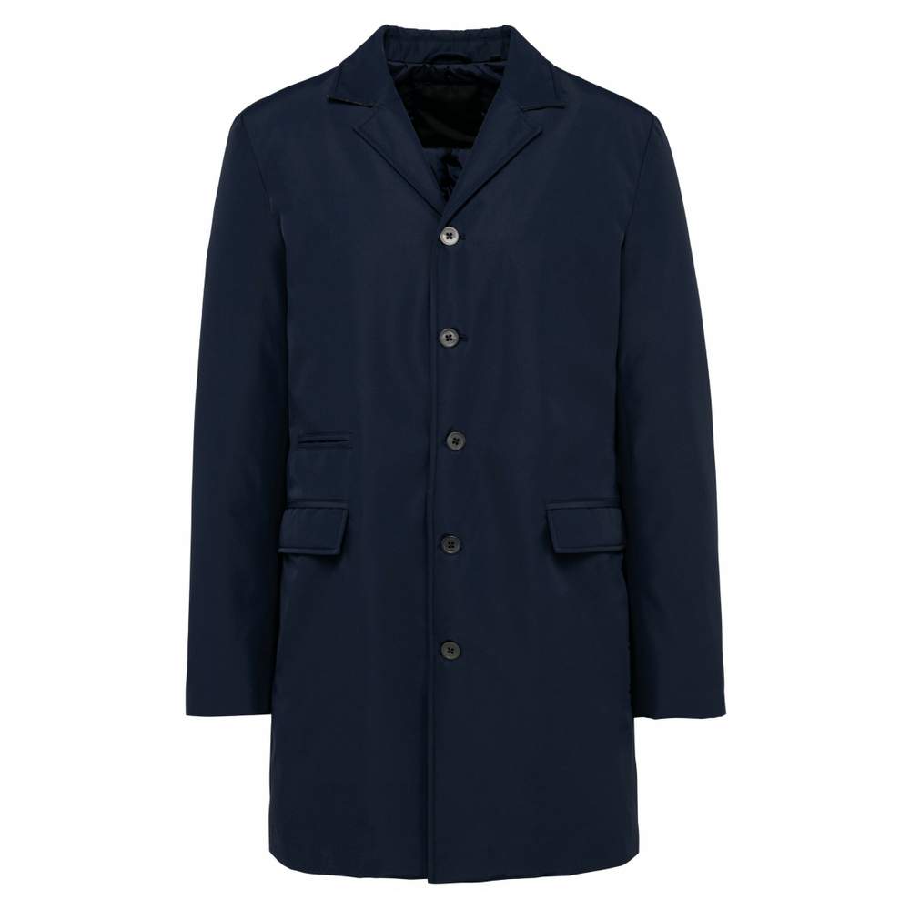 Gestructureerde trenchcoat voor mannen. Winddichte pasvorm met stijf kraag en binnenkant met contrastvelour. Voorop knopenriem met metalen knopen en aan de polsen. Twee voorste klapzakken en een ritszak aan de rechterkant en een binnenste ritszak aan de linkerkant. Openslaande achterdeel met drukknop. Lus aan de halsband om de trenchcoat op te hangen. Persoonlijke ritsen binnen, onderaan achter en aan de linkerkant. Persoonlijke patch op de rug. Samenstelling: 100% polyester.