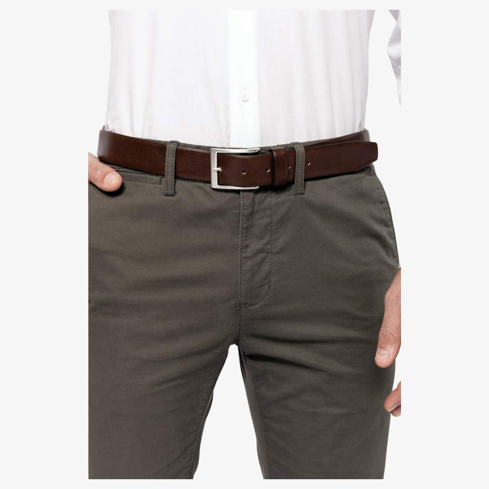 Riem van volle leer, aniline afwerking. Gebombarde riem, gemaakt in Italië. Breedte: 3,5 cm. Beschikbaar in 4 maten: Maat 1 (90 cm op het derde gat aan de rand van de riem), maat 2 (95 cm op het derde gat aan de rand van de riem), maat 3 (100 cm op het derde gat aan de rand van de riem), maat 4 (105 cm op het derde gat aan de rand van de riem). Metaal gesp. Geleverd in een zwarte katoenen tas.