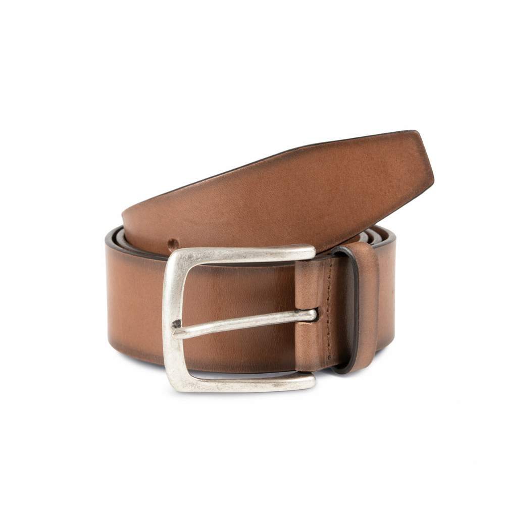 Riem in vleesdroge koeienleder, aniline afwerking. Plat riem gemaakt in Italië. Beschikbaar in 4 maten : Maat 1 (90 cm op de derde kras van de riemrand), maat 2 (95 cm op de derde kras van de riemrand), maat 3 (100 cm op de derde kras van de riemrand), maat 4 (105 cm op de derde kras van de riemrand). Metaal slot. Geleverd in zwarte katoenen tas.