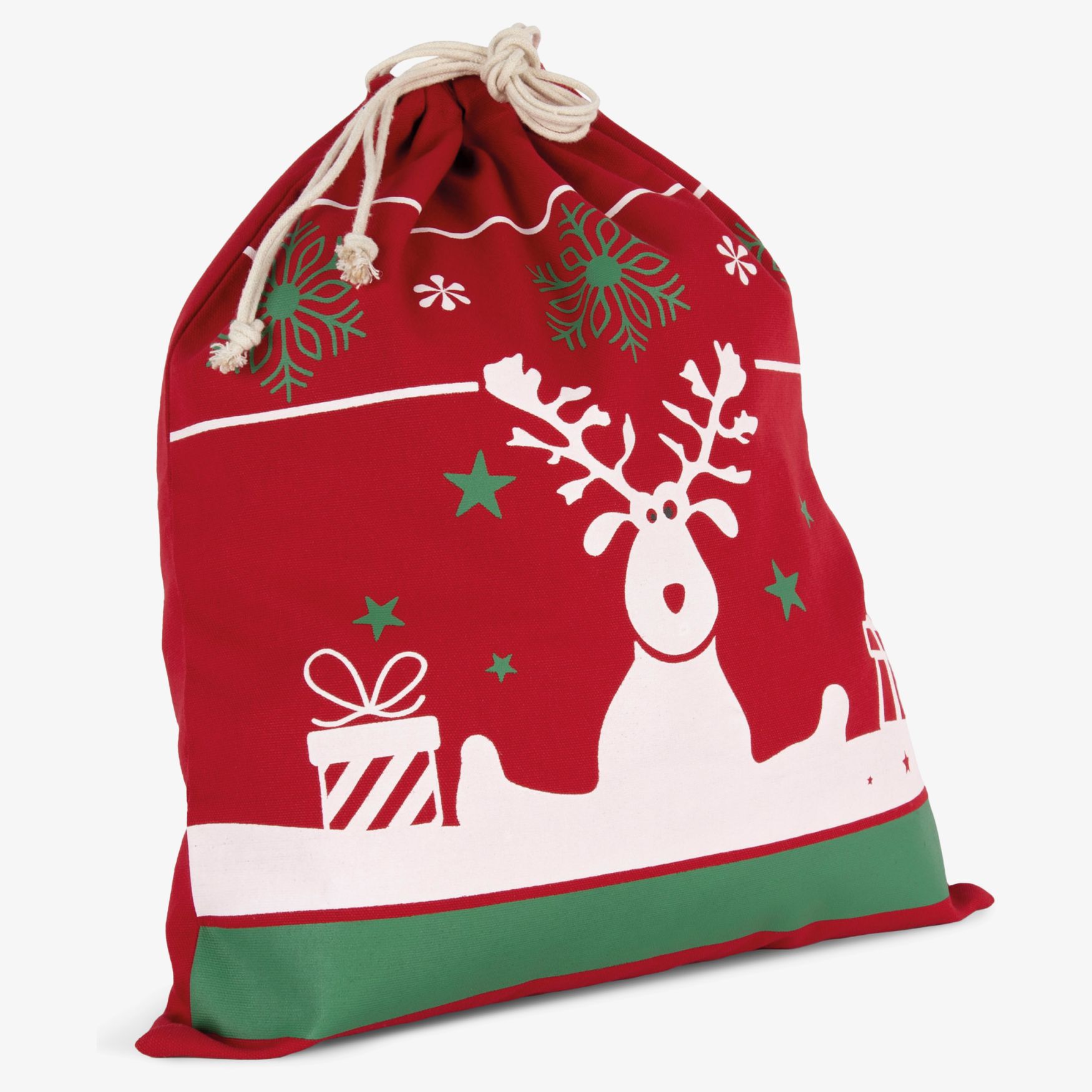 Tas met kerstmotieven, ontworpen voor eenvoudig vervoer van verschillende objecten. De koordsluiting zorgt voor eenvoudige en effectieve bescherming van de inhoud. Met een capaciteit van 14 liter biedt het voldoende ruimte voor dagelijkse benodigdheden of kleine verplaatsingen. De afmetingen zijn 38 cm hoog en 44 cm breed. Het is gemaakt van 100% katoen.