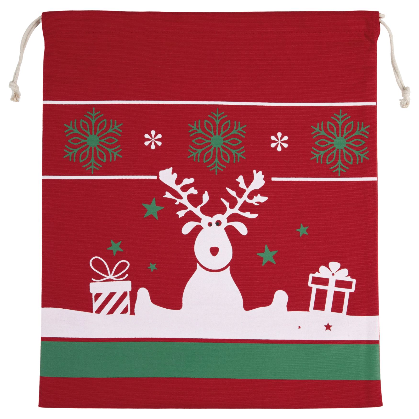 Tas met kerstmotieven, ontworpen voor eenvoudig vervoer van verschillende objecten. De koordsluiting zorgt voor eenvoudige en effectieve bescherming van de inhoud. Met een capaciteit van 14 liter biedt het voldoende ruimte voor dagelijkse benodigdheden of kleine verplaatsingen. De afmetingen zijn 38 cm hoog en 44 cm breed. Het is gemaakt van 100% katoen.