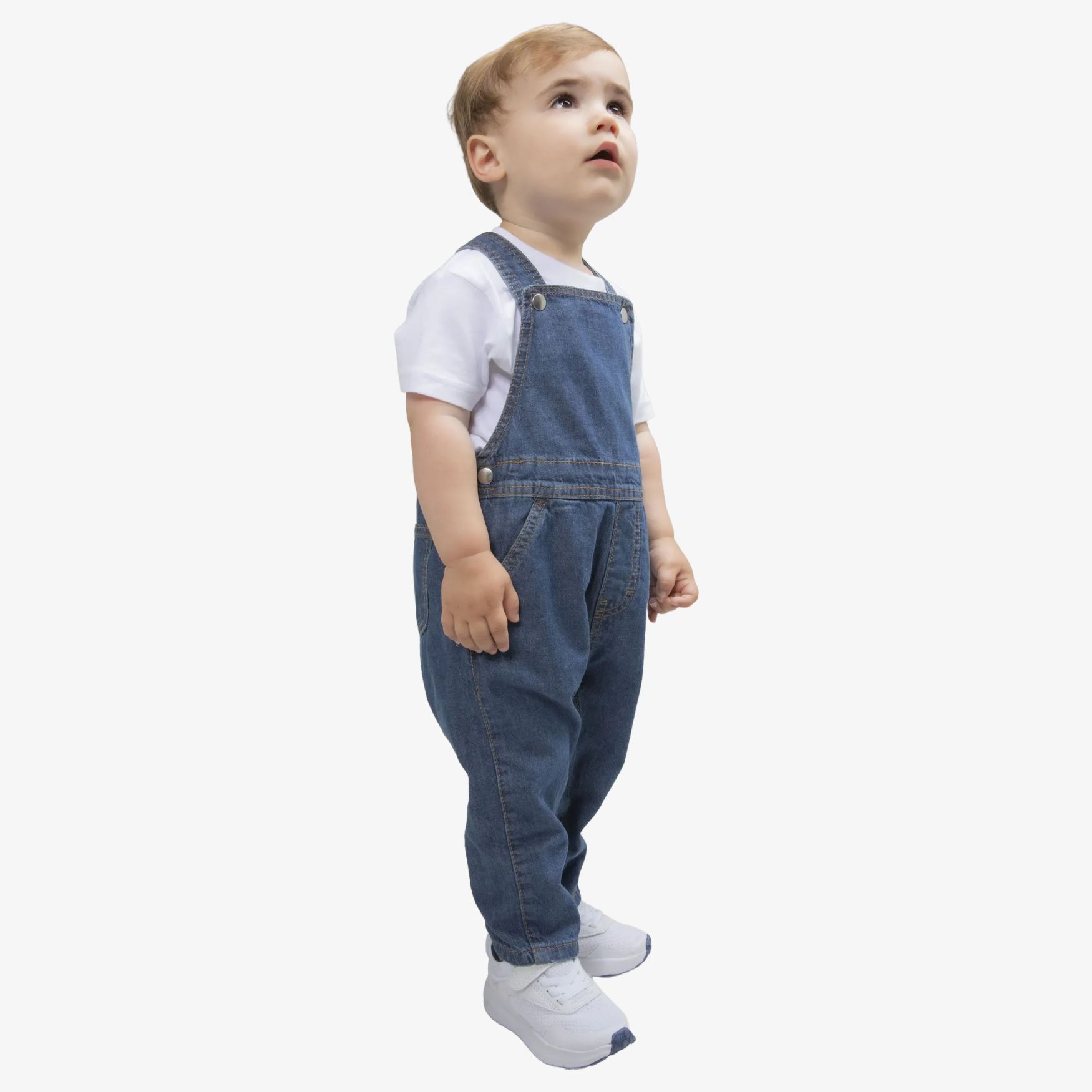 De Denim Dungarees is een baby tuinbroek van verwassen denim met verstelbare schouderbanden, drukknoopsluiting en zijdelingse openingen met drukknopen. Jeansstijl stiksels en zijzakken maken dagelijks gebruik praktisch.