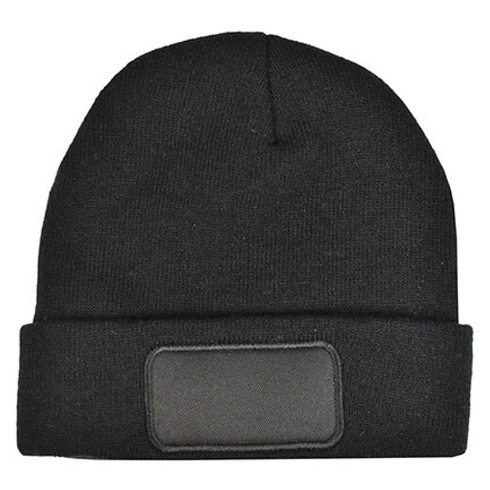 1451 - Gehaakte muts met patch Eenkleurige acryl muts 1451 aanpassing - black