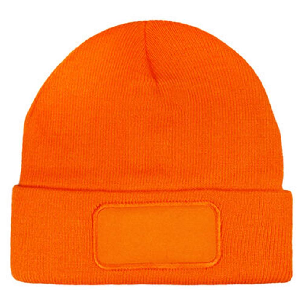1451 - Gehaakte muts met patch Eenkleurige acryl muts 1451 aanpassing - orange