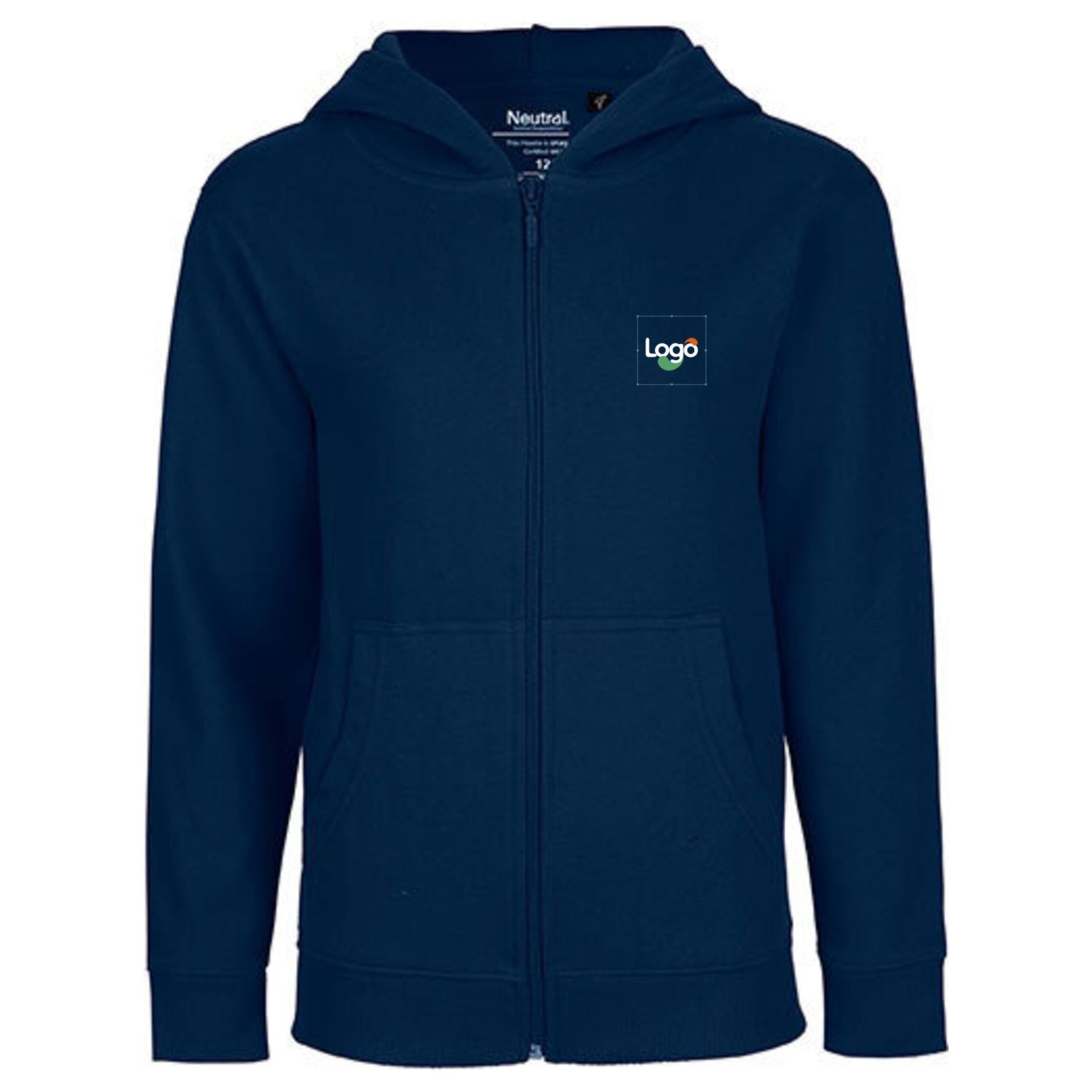 Kids zip hoodie Biologische katoenen sweat o13301 gepersonaliseerd - Navy