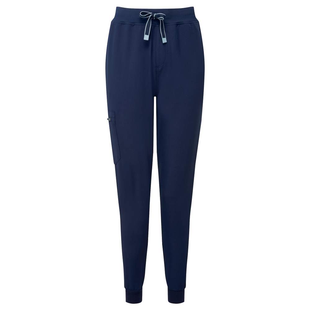 Trainingsbroek voor vrouwen, ontworpen voor comfort en vrije beweging. Dit vierkante-stretchmodel is gemaakt van een ademend, eenvoudig te onderhouden en krimpvrij weefsel. Het heeft een elastische tailband met een strik en een valse vlieg. Meerdere zakken bieden ruimte voor een mobiele telefoon. De enkels zijn afgeborduurd met geribbelde band. Deze broek bevat gerecycled polyester.