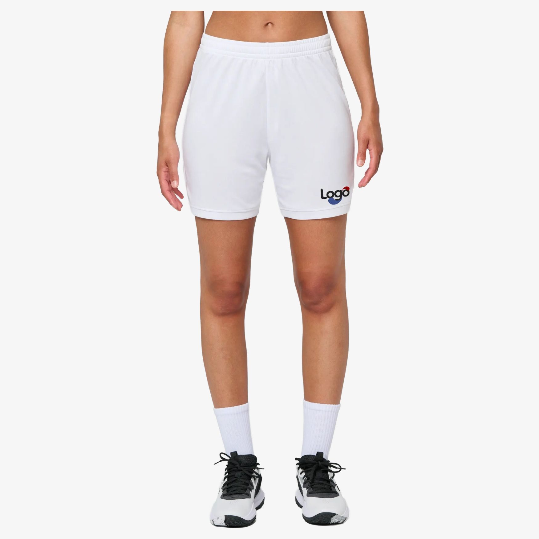 De dames basketbalshort is gemaakt van ademend micro polyester birdseye-stof. Het heeft een antistatische behandeling en een elastische tailleband met platte trekkoorden. Twee open zijsplitten met een ton-sur-ton aangebrachte band bevinden zich aan de onderkant van het kledingstuk. Afneembaar merketiket.