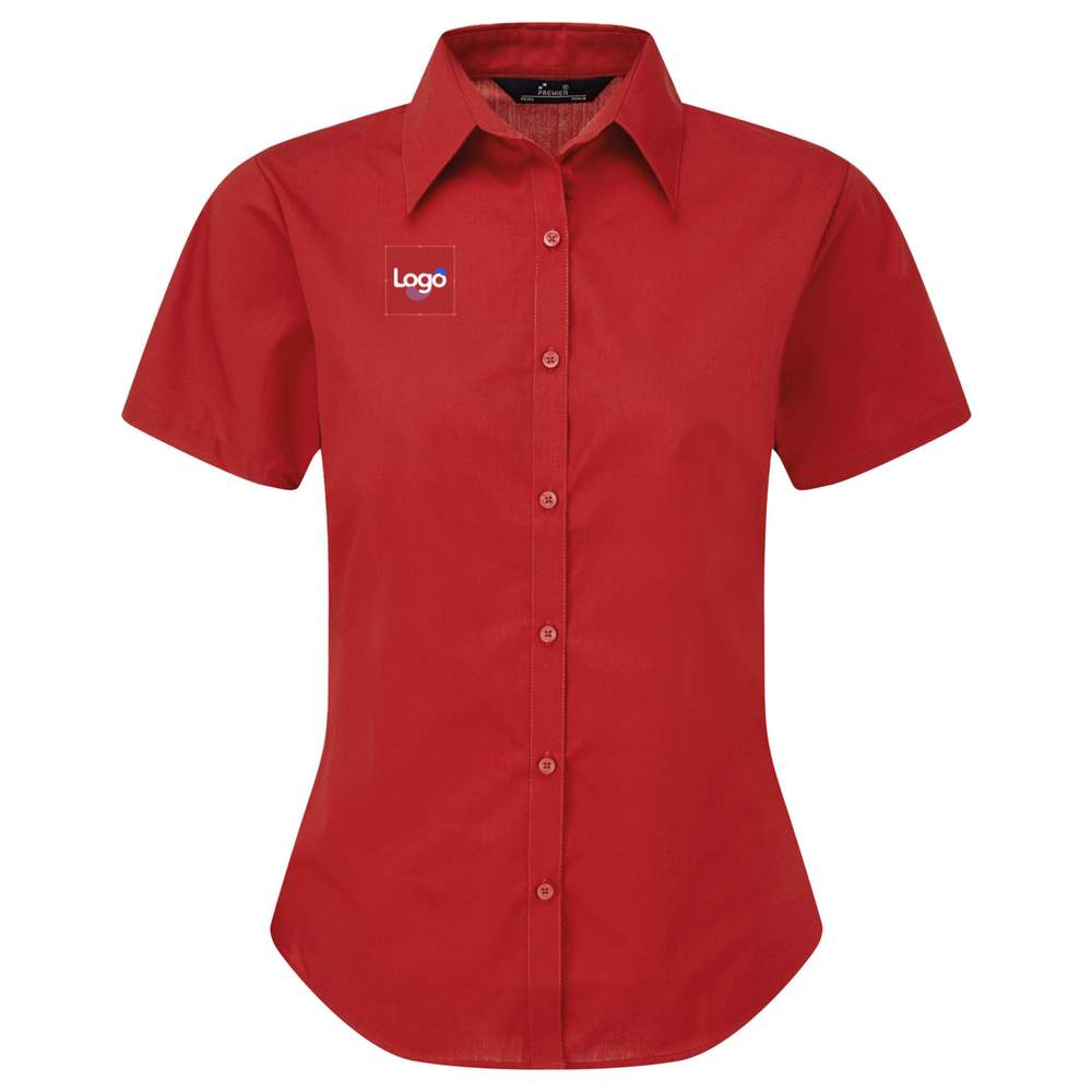 Korte mouwen overhemd voor dames, gemaakt van poppeline van katoen polyester, comfortabel en gemakkelijk te onderhouden. Geslepen passvorm met plooien voor een slankere silhouet. Beschikbaar in een ruime kleurenpalet om aan alle stijlen te voldoen. Mogelijkheid tot personalisatie door middel van borduurwerk om uw logo of visueel effect toe te voegen