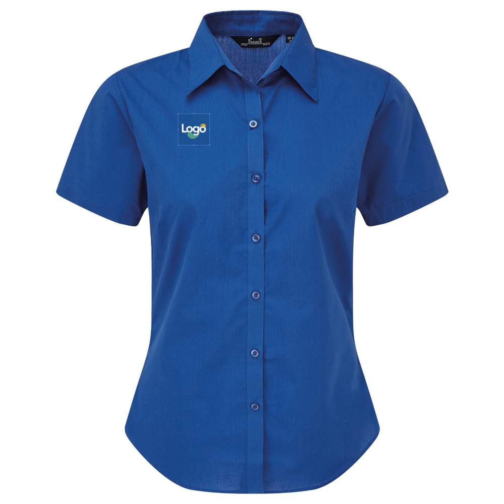 Korte mouwen overhemd voor dames, gemaakt van poppeline van katoen polyester, comfortabel en gemakkelijk te onderhouden. Geslepen passvorm met plooien voor een slankere silhouet. Beschikbaar in een ruime kleurenpalet om aan alle stijlen te voldoen. Mogelijkheid tot personalisatie door middel van borduurwerk om uw logo of visueel effect toe te voegen