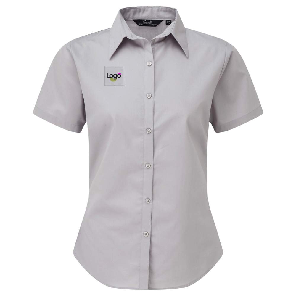 Korte mouwen overhemd voor dames, gemaakt van poppeline van katoen polyester, comfortabel en gemakkelijk te onderhouden. Geslepen passvorm met plooien voor een slankere silhouet. Beschikbaar in een ruime kleurenpalet om aan alle stijlen te voldoen. Mogelijkheid tot personalisatie door middel van borduurwerk om uw logo of visueel effect toe te voegen