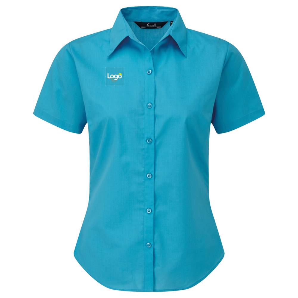 Korte mouwen overhemd voor dames, gemaakt van poppeline van katoen polyester, comfortabel en gemakkelijk te onderhouden. Geslepen passvorm met plooien voor een slankere silhouet. Beschikbaar in een ruime kleurenpalet om aan alle stijlen te voldoen. Mogelijkheid tot personalisatie door middel van borduurwerk om uw logo of visueel effect toe te voegen