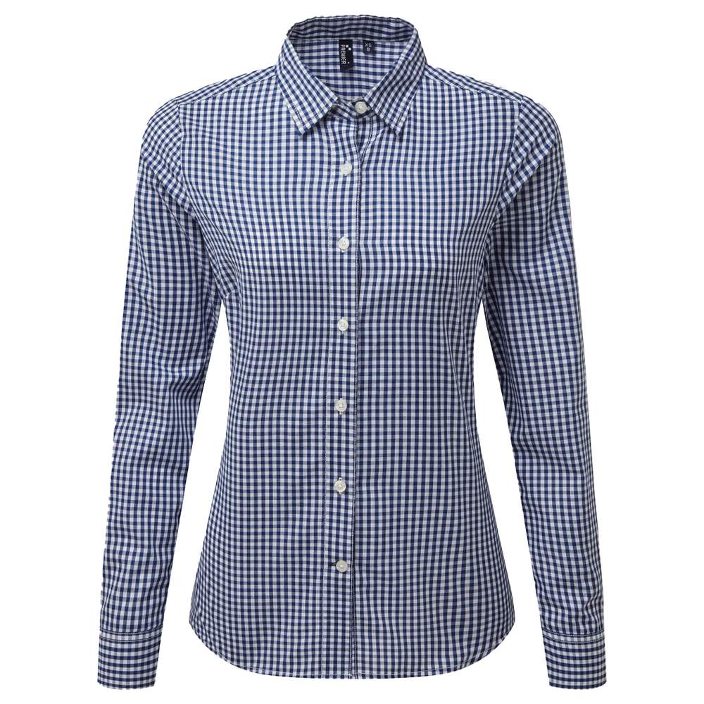 Deze gevlekte blouse heeft een klassiek vichy-motief en lange mouwen. Het is ontworpen met een knop op de mouw voor een aanpasbare pasvorm en makkelijk op te stropen mouwen. De manchet en de polsbeschermer hebben een enkele knop. De kraag verbergt een knop voor een verzorgde afwerking. Dit kledingstuk is ontworpen voor gemakkelijk onderhoud, wat de integratie in een dagelijks garderobe vergemakkelijkt.