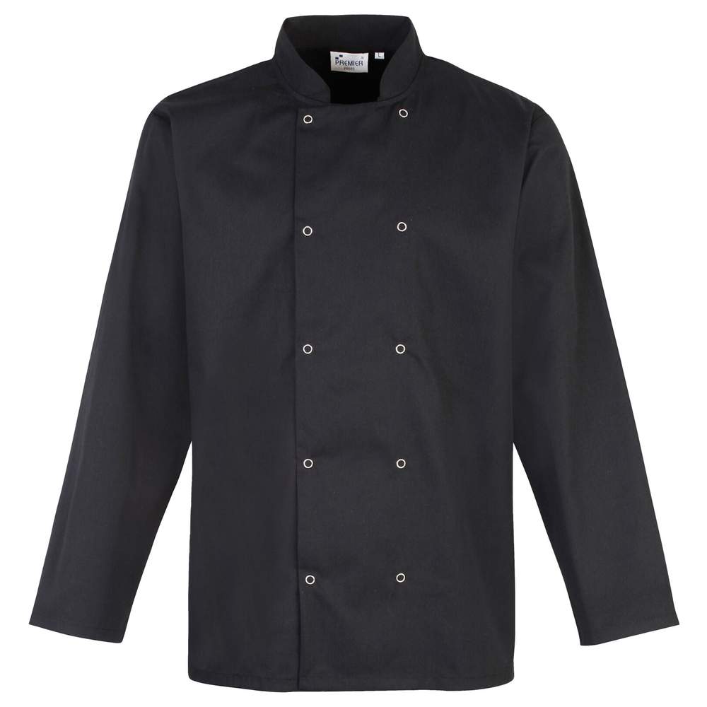 Deze keukenjas is ontworpen om aan de behoeften van horecaprofessionals te voldoen. Het biedt optimale comfort dankzij een goed overzichte snit en lange mouwen. De sluiting met tien metalen drukknopen biedt een veilige en eenvoudig te gebruiken bevestiging. Zijn omhullende portefeuille-stijl en zijn Mao-kraag geven hem een professioneel en verzorgd uiterlijk. Geproduceerd uit een mengsel van polyester en katoen, biedt deze jas een goede weerstand en eenvoudig onderhoud.
