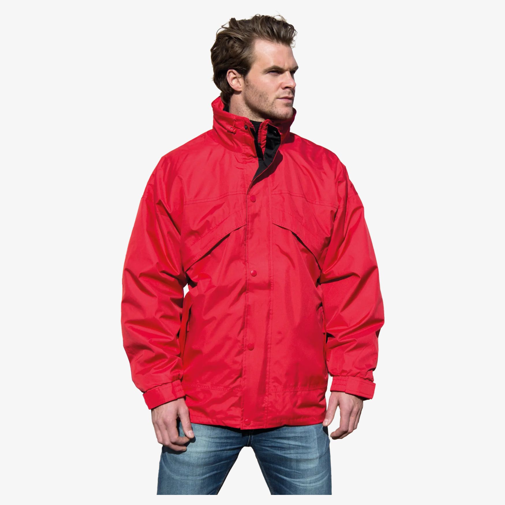 Deze 3-in-1 jas combineert een buitenjas die waterdicht is met een losse vloerkleed voor extra veelzijdigheid. De buitenjas is voorzien van gelaste naden voor optimale bescherming tegen de elementen. Een volledige ritssluiting maakt het mogelijk om deze aan de boven- of onderkant te openen, en een windband met drukknoppen biedt extra bescherming. Vier voorzakken met ritssluiting en regenbeschermende flaps bieden veilige opslagruimte. De kap die in de kraag is ingebouwd is aanpasbaar met een klettensysteem. Een elastische strengetrek in de onderkant maakt het mogelijk om de jas aan te passen voor optimale comfort. Toegang aan de linkerkant van de borst en in de binnenvoering van de rug vergemakkelijkt afdrukken en borduren.