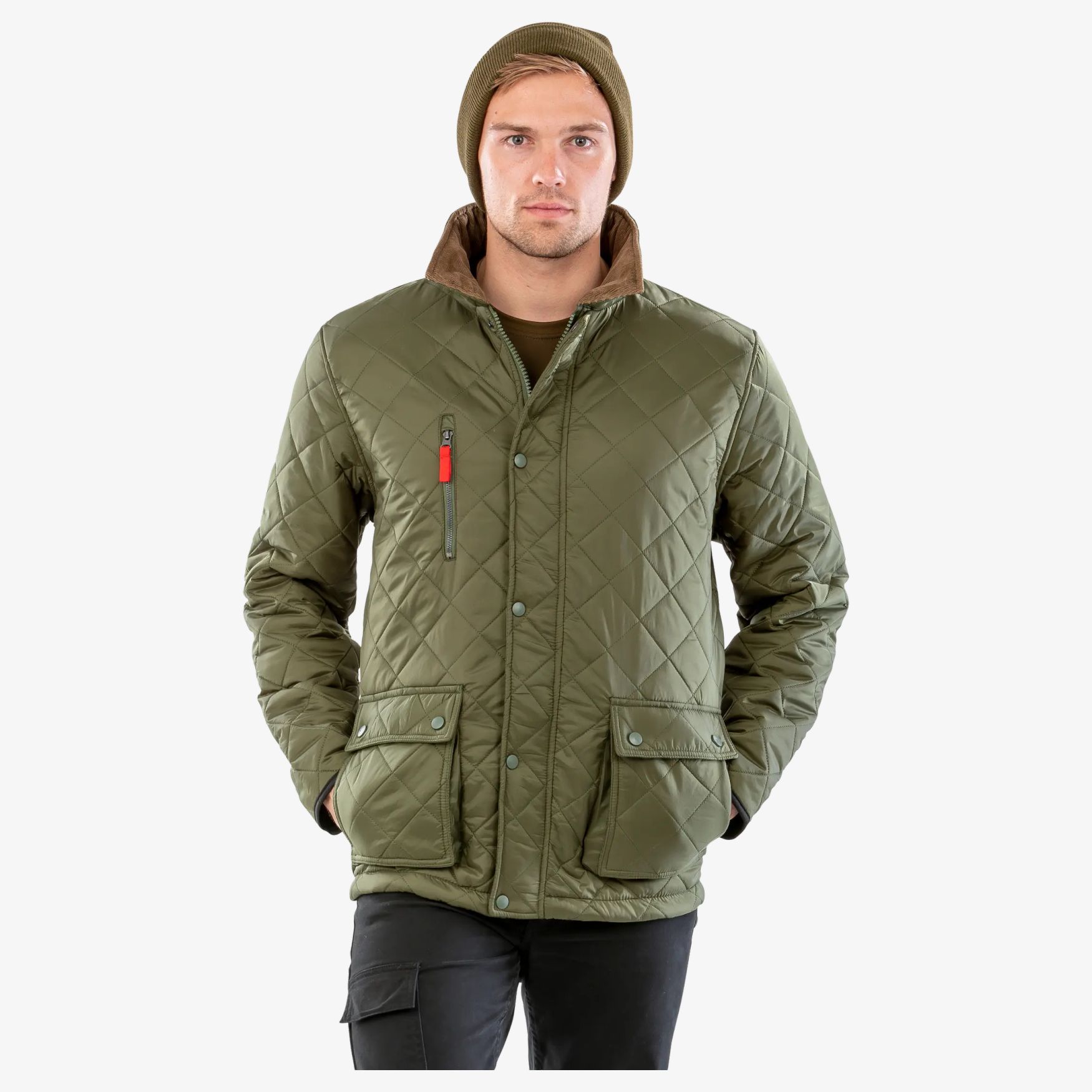 De Cheltenham gold Jacket parka is geschikt voor buitengebruik bij koel weer, met gewatteerde fleecevoering en een voorflap met drukknoopsluiting. Winddicht en waterafstotend, met opgestikte zakken met drukknoop, zij-ingangen als handwarmer en drukknoopsplitten achter. Ribfluwelen kraag en een tweewegrits.