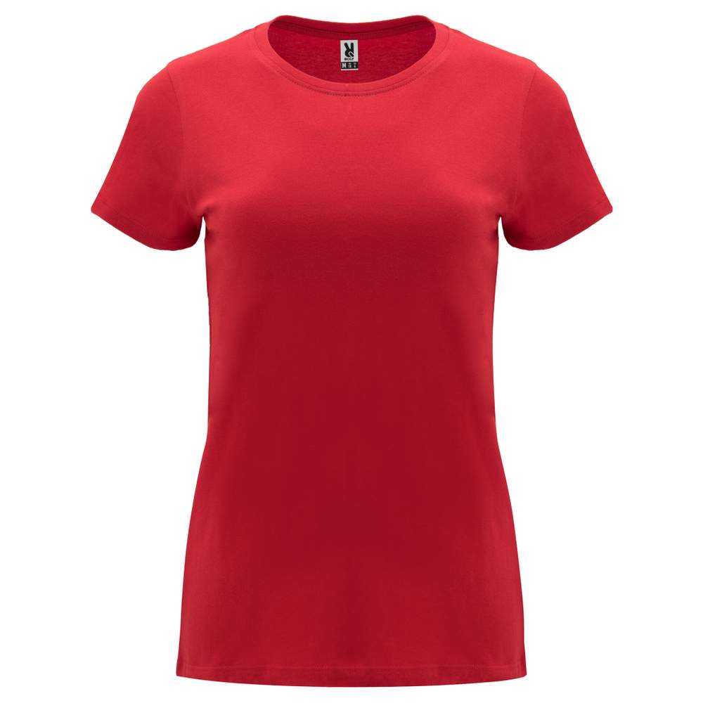 T-shirt met korte mouwen voor vrouwen, strakke pasvorm. Ronde hals in rib 1x1. Bandje voor netheid aan de halsopening. Zijkanten naden.