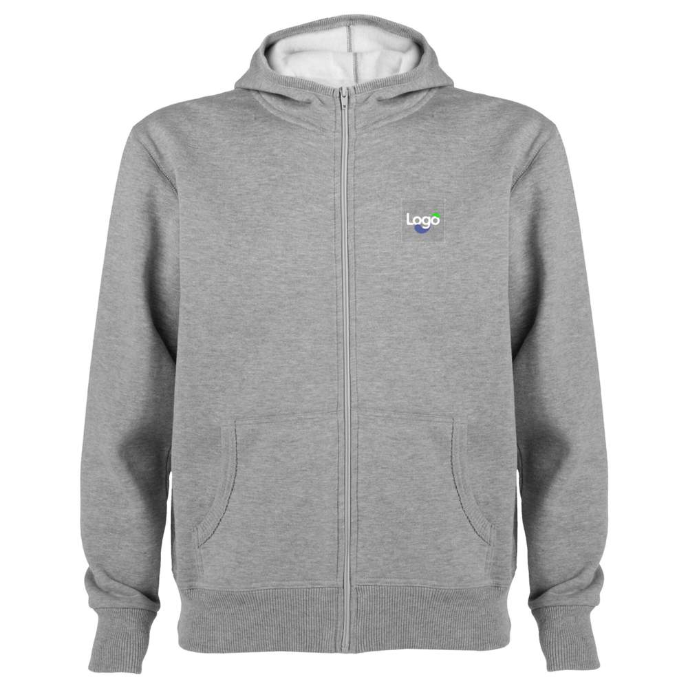 Geïntegreerde koppelingssweater met zip-sluiting. Kantelelement op de rand van de kap en de zakken. Stijlvolle kangaroozak. Manchetten en riem in kanteleiwerk 2x2. Beschikbaar in kindermaten. Losneembare label. Samenstelling: 50% katoen, 50% polyester, vlechtwerk met een dikte van 280, 3% elastisch aan de polsen (behalve kleur Gris chiné : 55% katoen, 40% polyester, 5% viscose). Dit sweatshirt biedt een uitstekend oppervlak voor personalisatie door borduurwerk of afdrukken van uw logo, ideaal voor evenementen, teams of promoties.
