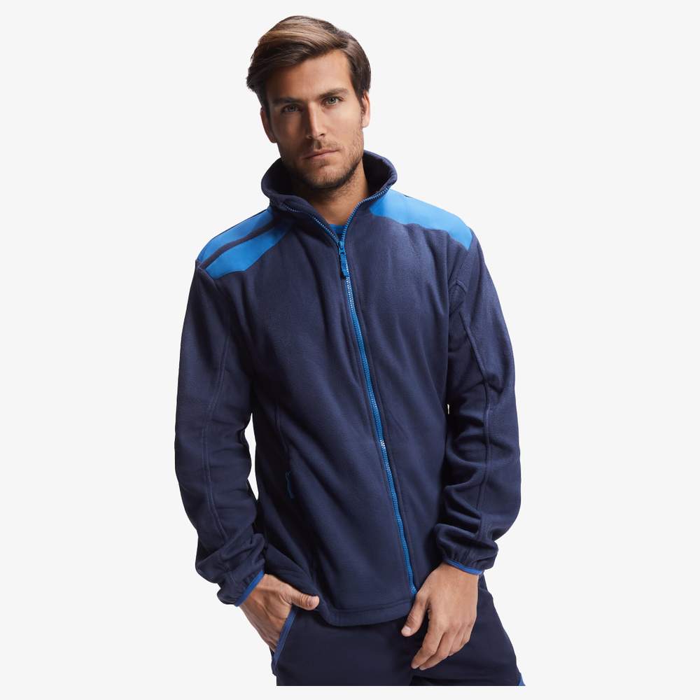 Polaire jas met gecombineerde kleuren, ontworpen voor optimaal comfort. Het heeft een hoge kraag en een contrasterende ingevoegde zip. De schouders en enkele details zijn ook contrasterend voor een onderscheidend uiterlijk. De jas heeft praktische zijpockets die met zips zijn afgesloten, zodat u kleine voorwerpen veilig kunt bewaren. De polsen en de onderkant van de jas zijn elastisch en voorzien van zijregelaars voor een maat op maat. Deze jas is gemaakt van 100% micropolaire polyester, wat een zachte aanvoeling en een goede thermische isolatie biedt.