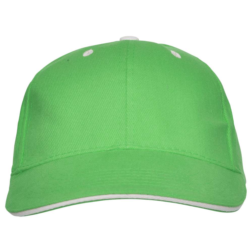 Pet Casquette 6 panelen. 6 ventilatieoogjes. 6 genaalde lijnen op het visier. Contrasterend lint en oogjes op het visier. Anti-transpiratiestrook. Achterzijde afsluiting zelfklevende strip. 100% katoen.