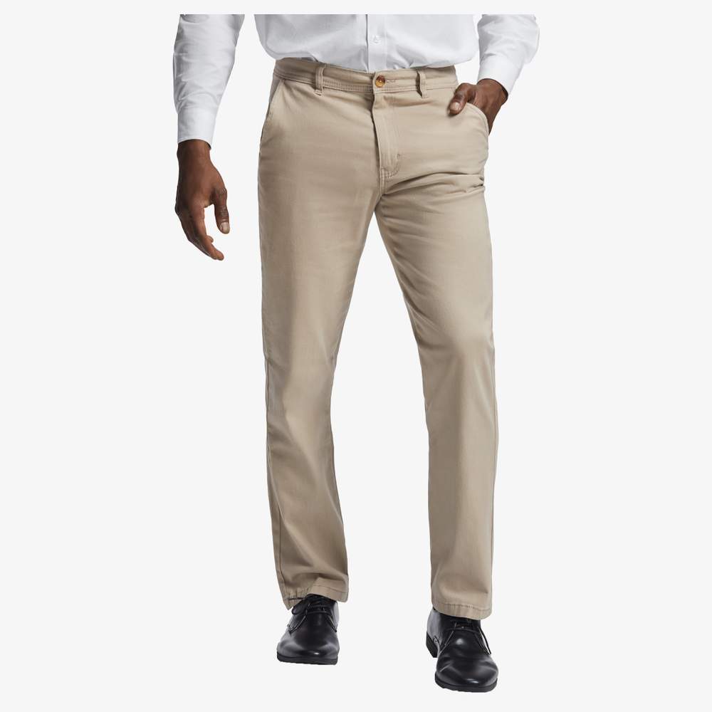 Broek ontworpen door mannen met gemak en duurzaamheid als doelen. Het biedt een comfortabele pasvorm en is vooral geschikt voor professionele omgevingen zoals hotels en dagelijks werk. Het beschikt over twee zijzakken van het type "chinese" voor gemakkelijke toegang, evenals twee achterzakken met knoopsluitingen en siernaden. De achterste plooien en riempassages bieden een optimale pasvorm.