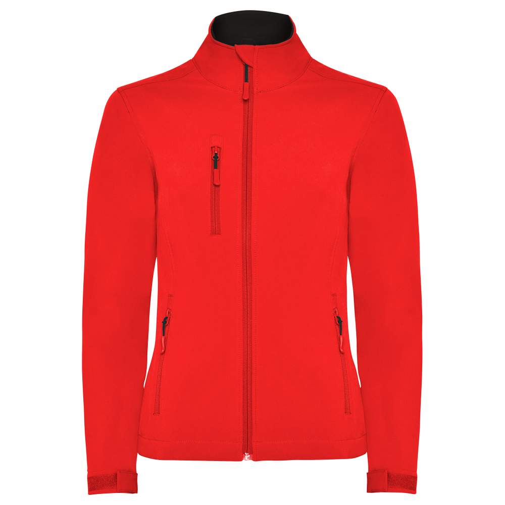 Kledij softshell 2 lagen voor vrouwen. Met een ton-op-ton zip met kinbescherming en gluiers. Binnenvoering in polairen. Een buitenzak op de borstkast aan de rechterkant met een zip en ton-op-ton gluiers. Twee buitenzaken met zip en ton-op-ton gluiers. Polsbanden met band-velcro. Broekriem met elastische koorden en uiteinden. Vrouwenpassende snit. Waterbestendig. Windbestendige model.