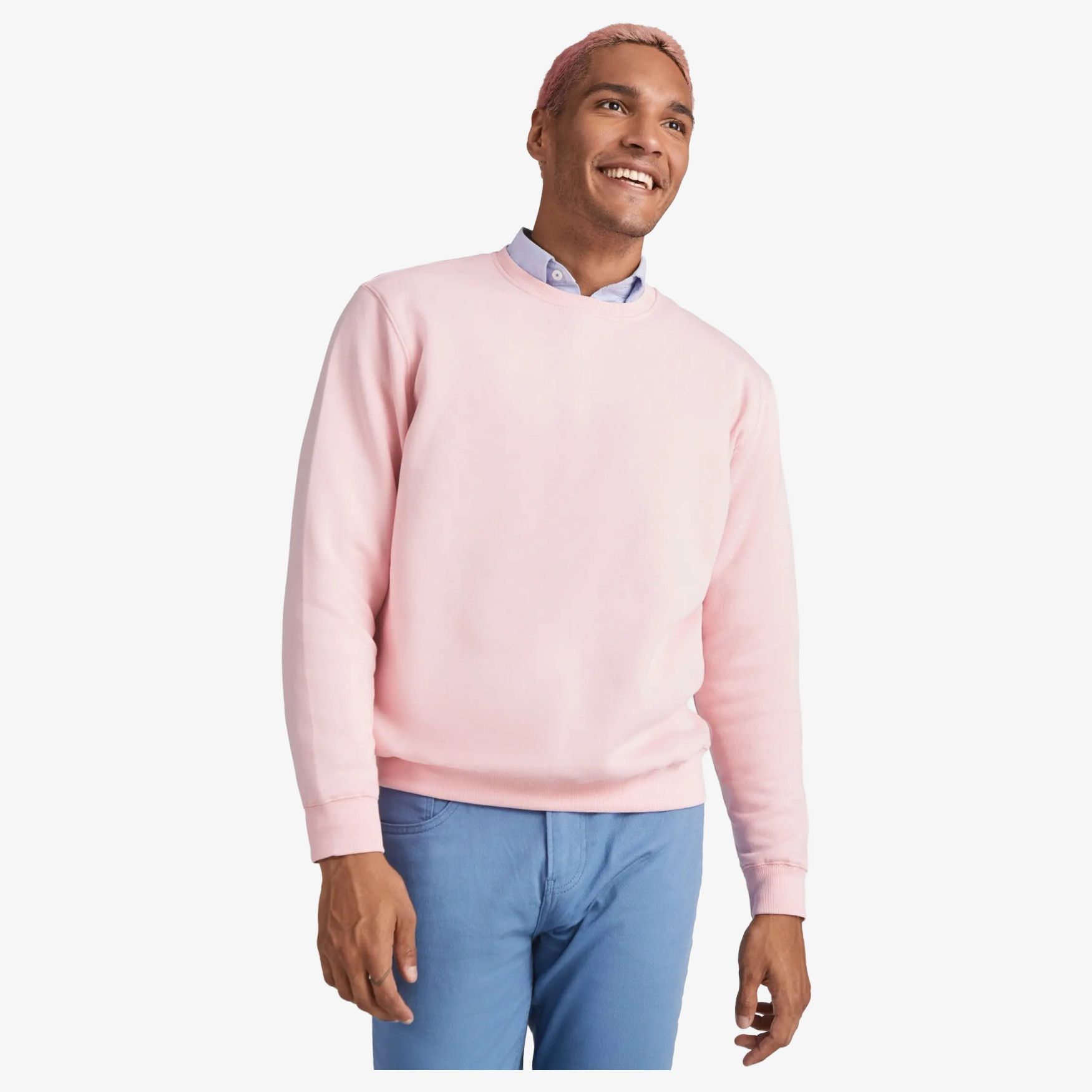Uniseks sweatshirt van geverfd biologisch katoen en gerecycleerd polyester. Kragen, manschetten en taille in rib 2x1. Overstichte naden op de schouders, onderarmopeningen, nek, manschetten en taille. Halve maan aan de binnenkant van de achternekking. Verwijderbare ECO-etiket. Individuele polybag van gerecycleerd materiaal. Uniseks model.