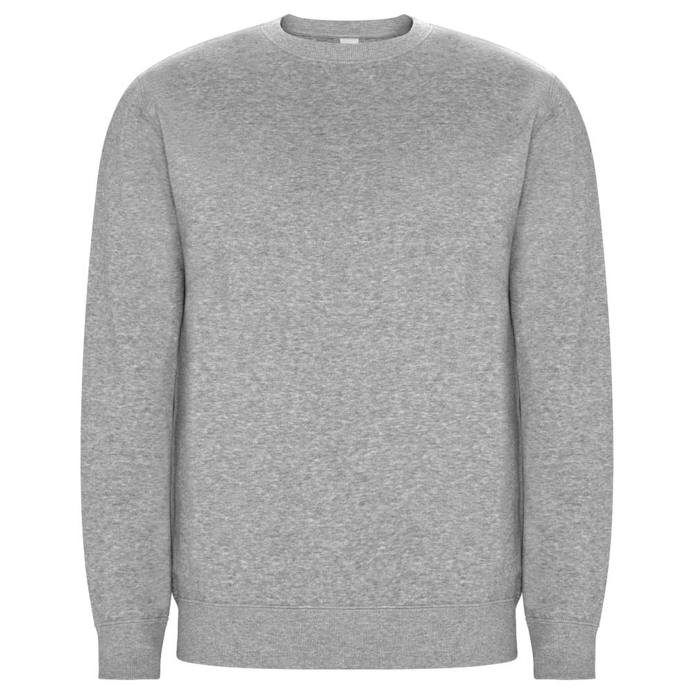 Uniseks sweatshirt van geverfd biologisch katoen en gerecycleerd polyester. Kragen, manschetten en taille in rib 2x1. Overstichte naden op de schouders, onderarmopeningen, nek, manschetten en taille. Halve maan aan de binnenkant van de achternekking. Verwijderbare ECO-etiket. Individuele polybag van gerecycleerd materiaal. Uniseks model.