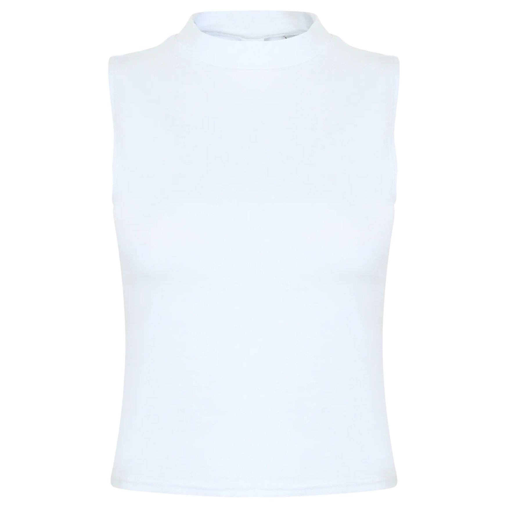 Women's high neck crop vest cropped top sk170 aanpasbaar - White