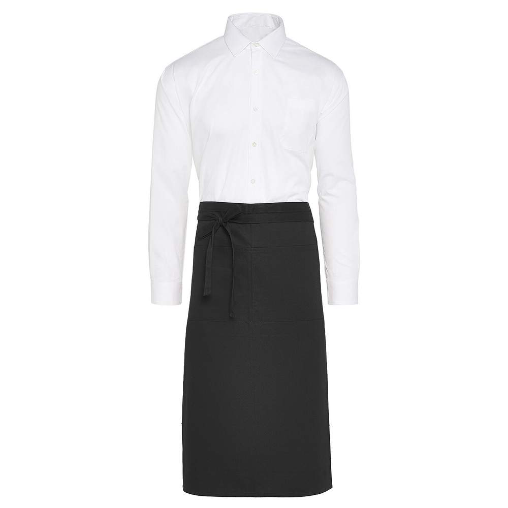 Dit middellange bistroschort is ontworpen met een grote voorzak die is verdeeld in twee compartimenten. Het heeft sterke verbindingen voor een sluiting die om de taille kan worden geknoopt. De centrale zak biedt een handige opbergruimte, met een maat van 40 x 20 cm. De afmetingen van het schort zijn 100 x 78 cm. Het is gemaakt van een combinatie van polyester en katoen, wat een evenwicht biedt tussen duurzaamheid en comfort.
