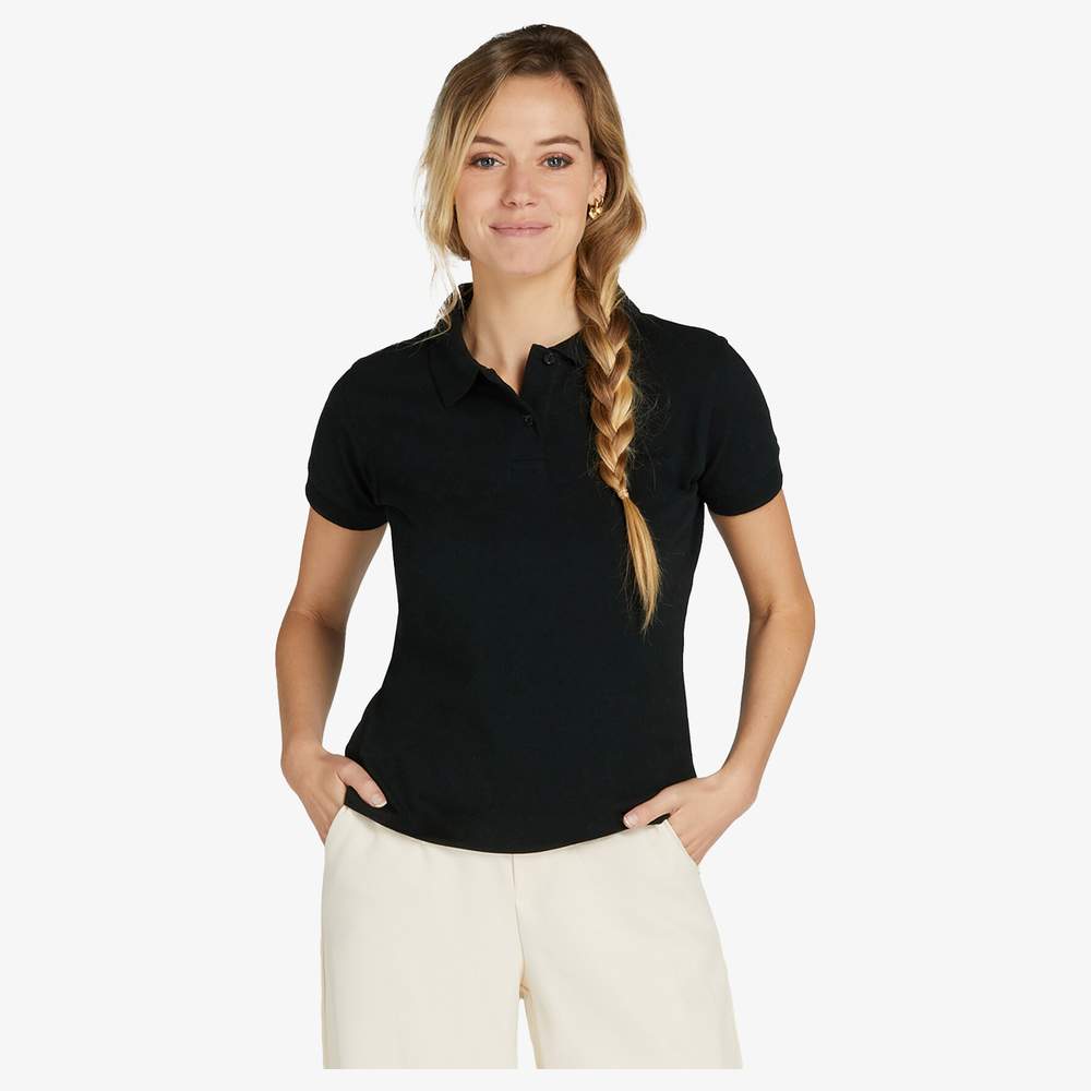 Dit piqué poloshirt is gemaakt van fijn katoen met een vrouwelijke passvorm en zijkanten die voor extra bewegingsvrijheid zorgen. Het is zacht, stevig en aangenaam om te dragen. De kantsboord aan de kraag en de polsbanden laten het zijn vorm behouden, en de knooprij met twee ton-op-ton-knopen maken het een onmisbaar item in je garderobe. Reinigingsbandje en een knooprij met twee knopen. Zijkanten voor een verbeterde passvorm, zijnaden. Kantsboord aan de kraag en de manchetten. Reserveknop.