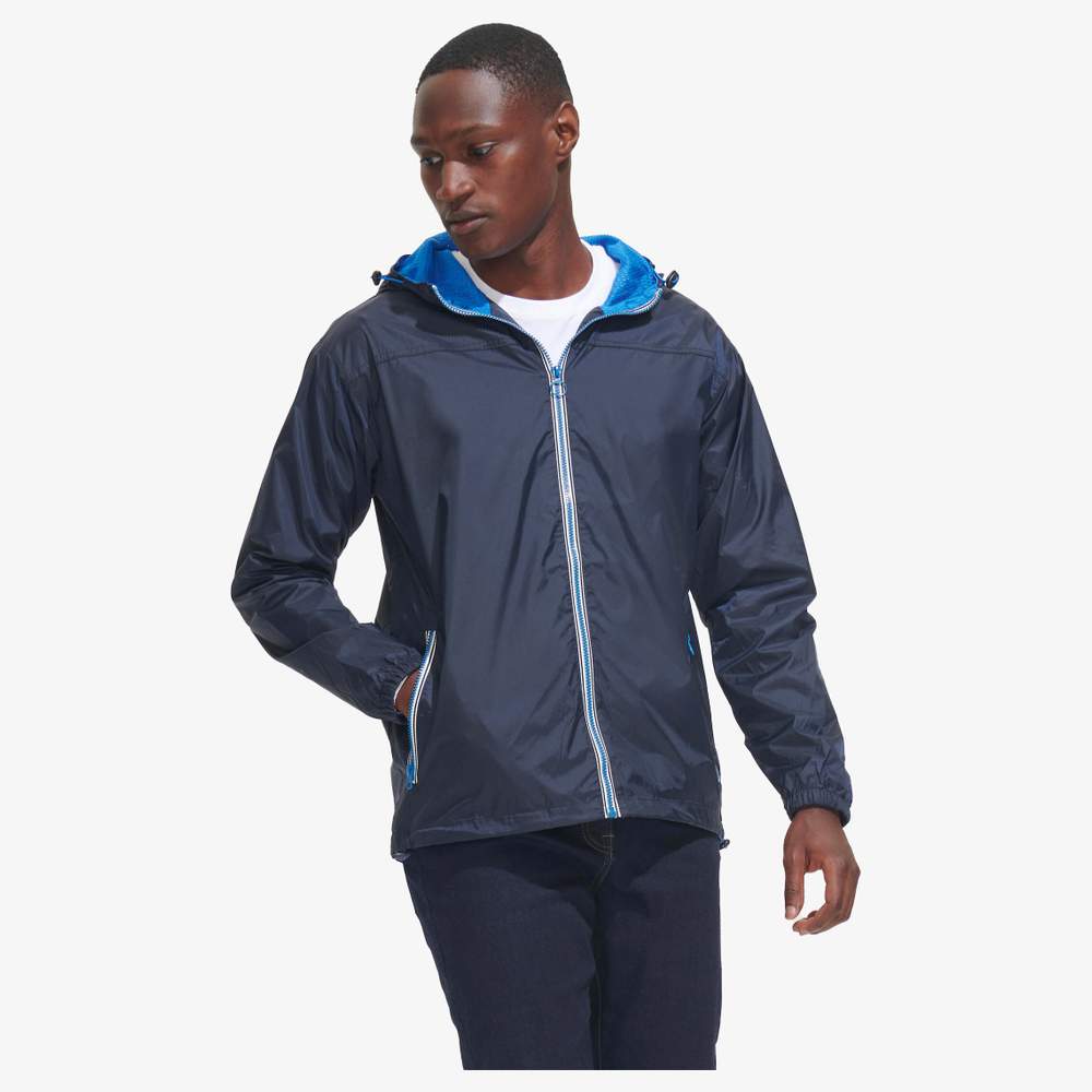 De winddichte buitenjas Skat SOL'S is ontworpen om bescherming te bieden tegen de wind en slecht weer. Het buitenmateriaal van nylon 210T en het binnenmateriaal van polyester gaas zorgt voor comfort en ademend vermogen. Deze buitenjas heeft een contrasterende zip en praktische zijzakken, evenals een opening met een klettapband aan de onderkant van de rug voor gemakkelijke aanpassing.