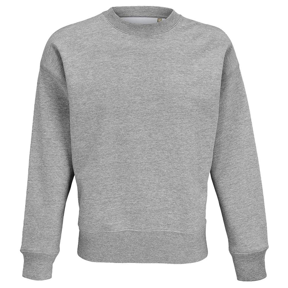 Uniseks trui met ronde hals biedt een oversize en comfortabele passvorm. De gemonteerde mouwen met hangende schouder geven een moderne touch. De hals, polsen en onderkant van het lichaam zijn voorzien van rib voor een optimale ondersteuning. Zijkanten van rib completeren het ontwerp. Een binnenste reinheidsband aan de hals biedt extra comfort. Deze trui is gemaakt van gestikt stof voor duurzaamheid en een nette afwerking.