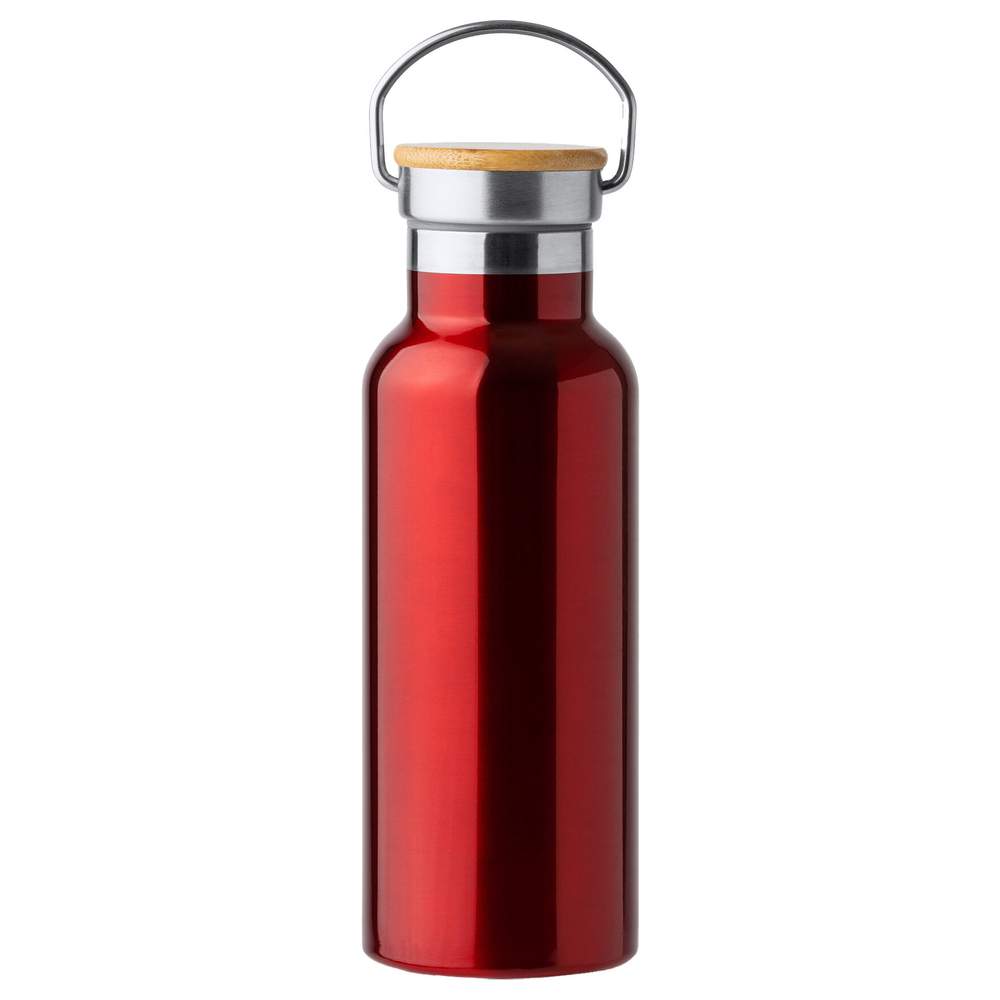 Deze fles met drank uit dubbelwandig roestvrij staal 304 is een duurzame en elegante keuze om de hele dag gehydrateerd te blijven. Met een handvat van metaal dat oplaatbaar is en een bambusdeksel, is deze gemakkelijk meedraagbaar en gebruiksvriendelijk. Met een capaciteit van 500 ml is hij ideaal voor sport, kantoor of buitenactiviteiten. De fles met drank is beschikbaar in een grote variëteit aan kleuren om je stijl aan te passen. Bovendien kan deze aangepast worden met jouw logo, boodschap of uniek ontwerp, wat het een ideale cadeau maakt voor je klanten, medewerkers of dierbaren.