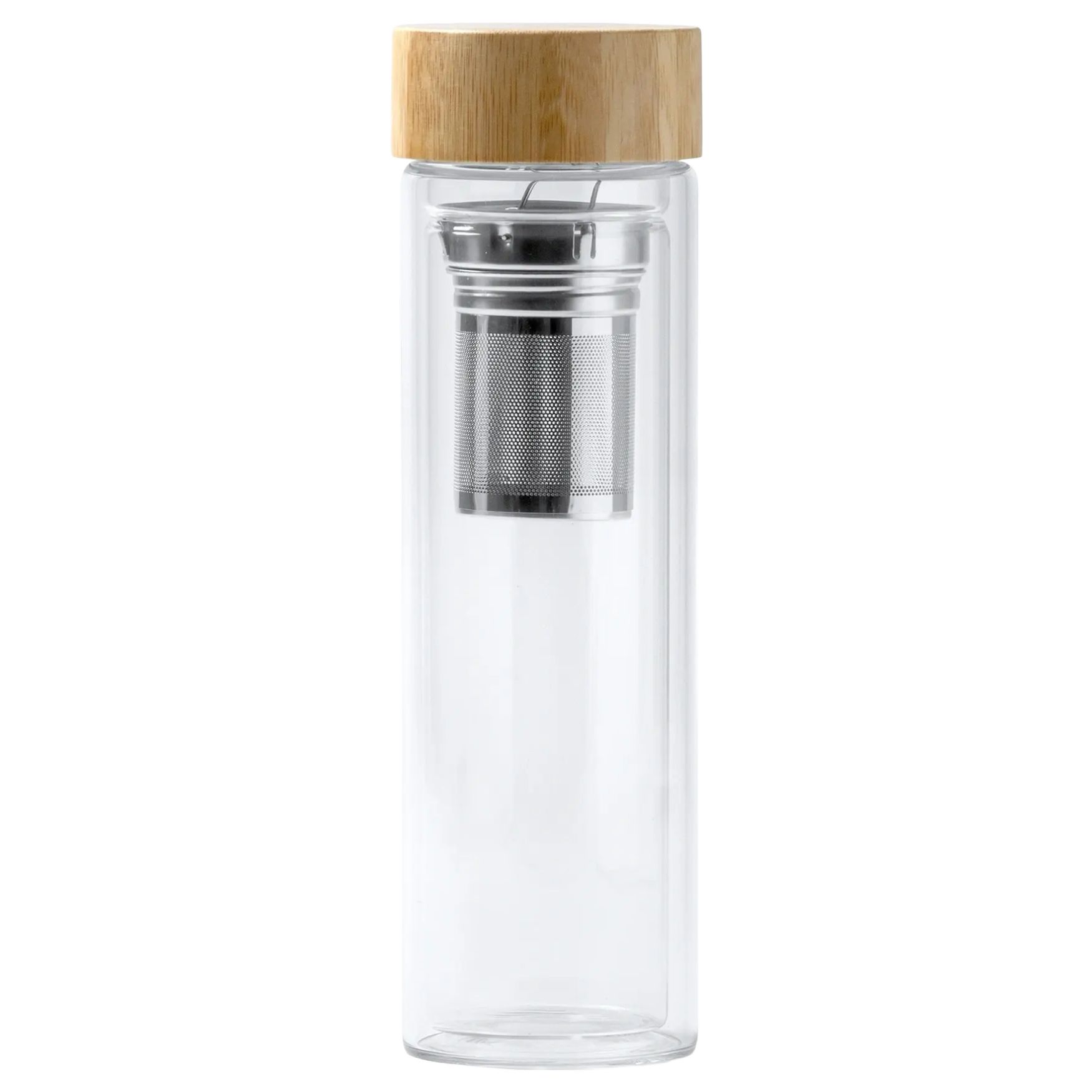 De SAOKO glazen drinkfles bi4203 is een dubbelwandige drinkfles van borosilicaatglas met bamboe deksel en theefilter. Geschikt om dagelijks te infuseren en te drinken. Inhoud 420 ml.