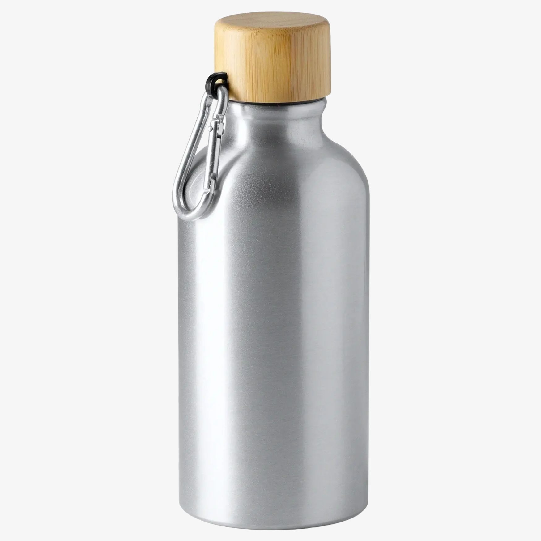 De GELDA drinkfles van aluminium met karabijnhaak en bamboe dop, inhoud 400 ml. Praktisch formaat om dagelijks een drank mee te nemen.