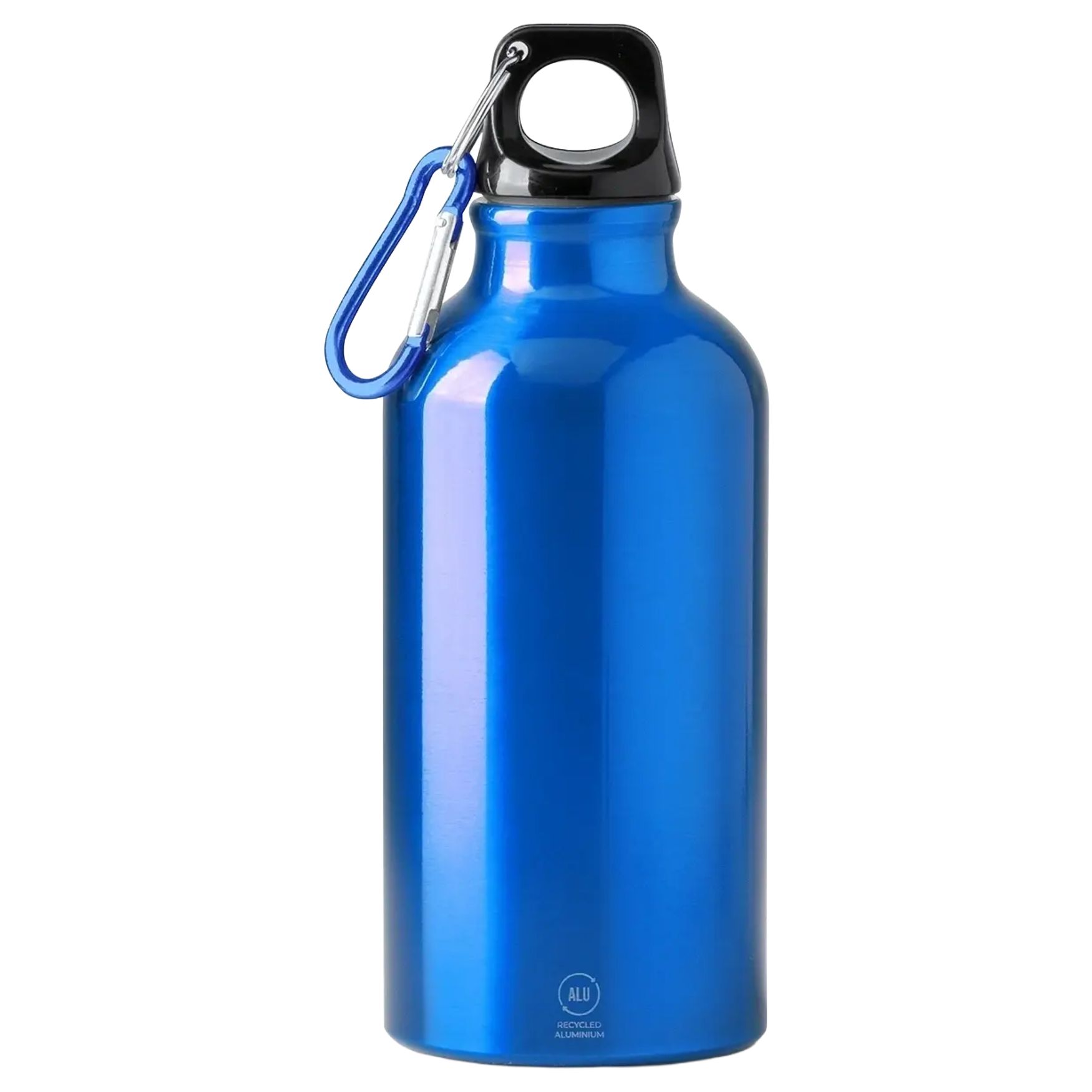 De RENKO drinkfles van gerecycled aluminium, enkelwandig, met bijpassende karabijnhaak, capaciteit 400 ml, maakt het mogelijk om dagelijks een drankje mee te nemen. De karabijnhaak vergemakkelijkt het vastmaken tijdens verplaatsingen. Het wordt afgeraden voor klimmen.
