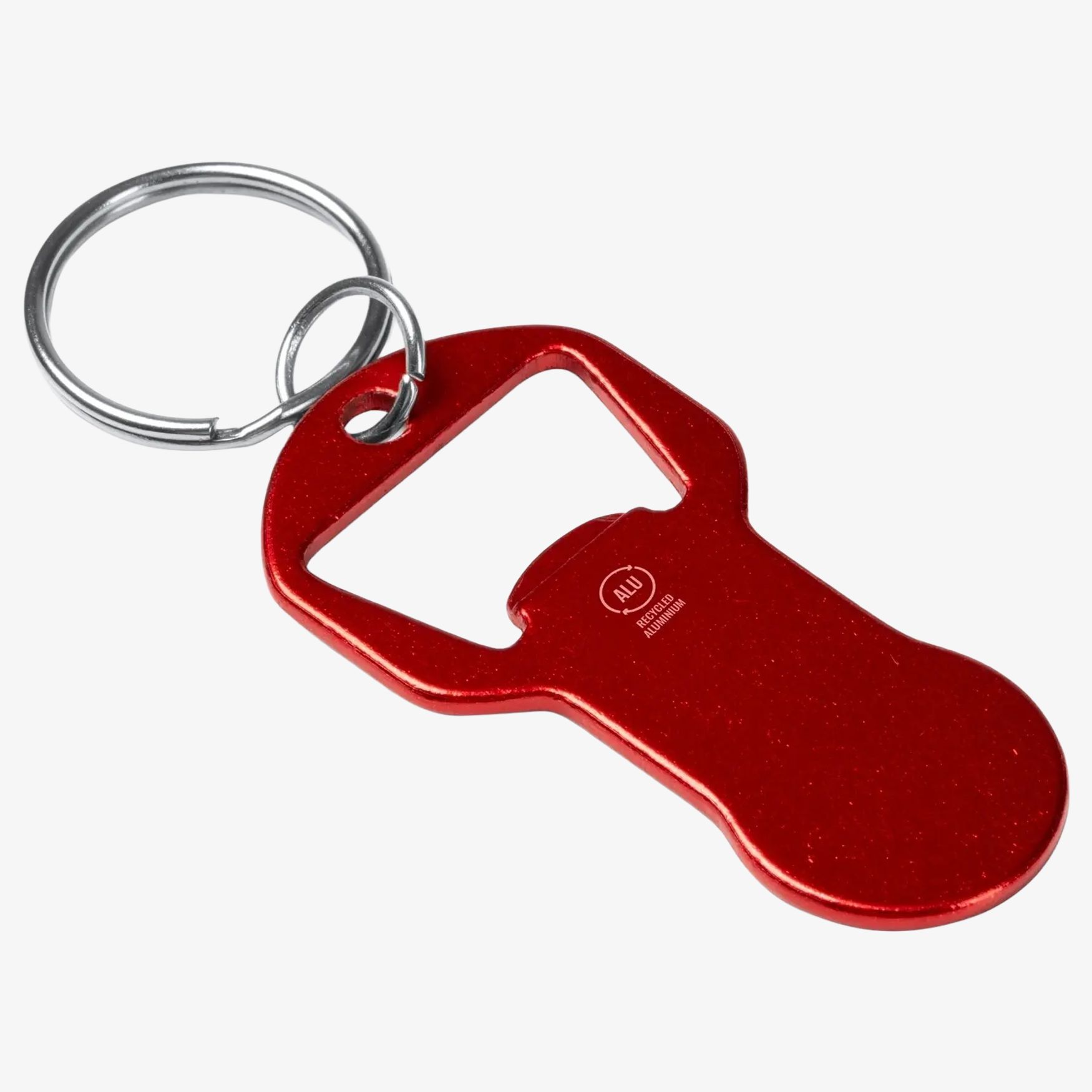 De Tagan sleutelhanger met munt van gerecycled aluminium bevat een flesopener en een munt voor het winkelwagentje. Het compacte formaat vergemakkelijkt het meenemen in het dagelijks gebruik. Afmetingen: 3,5 x 9 x 0,25 cm.