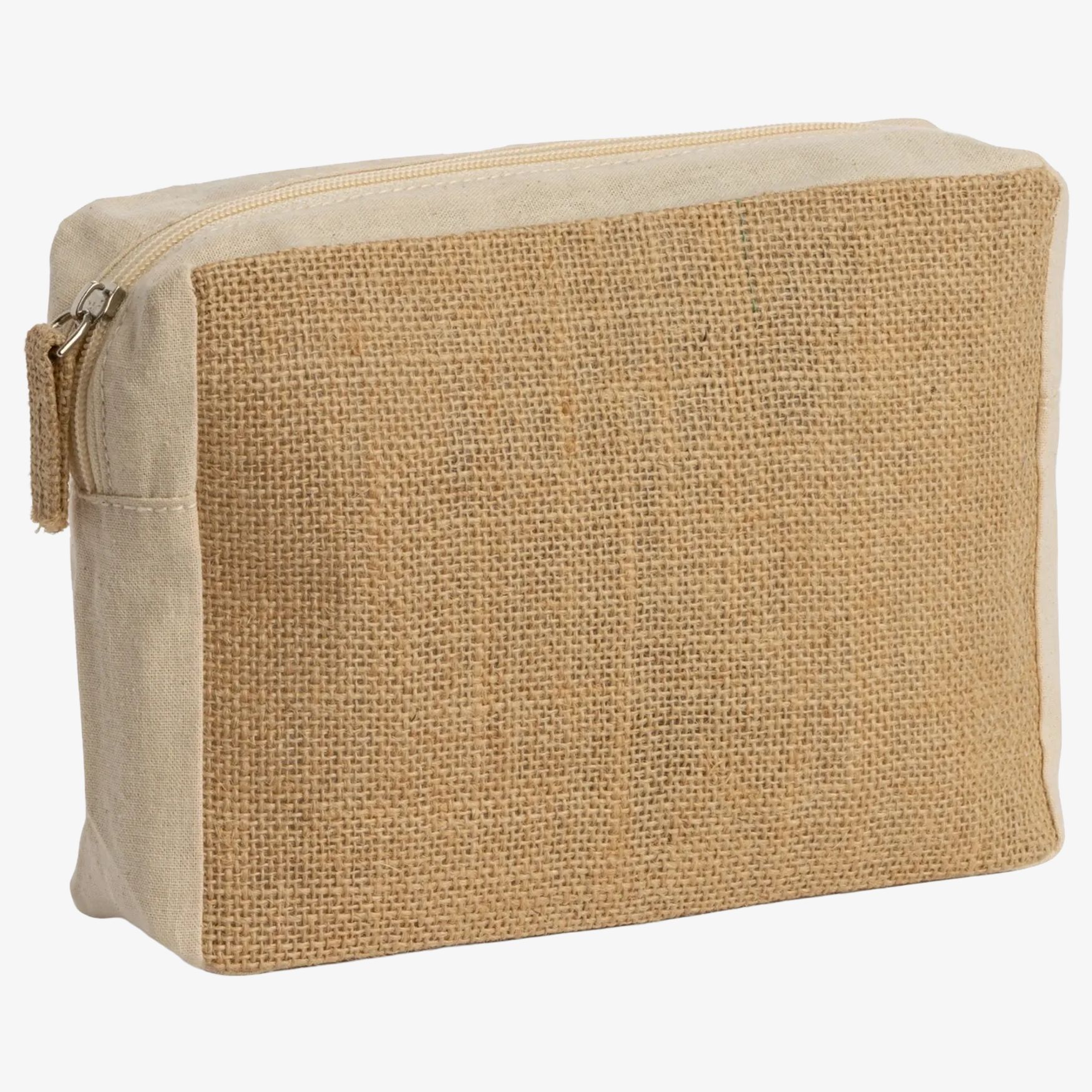 De toilettas VERA is gemaakt van gelamineerd katoen jute. Het heeft een ritssluiting met een bijpassende jute trekker.