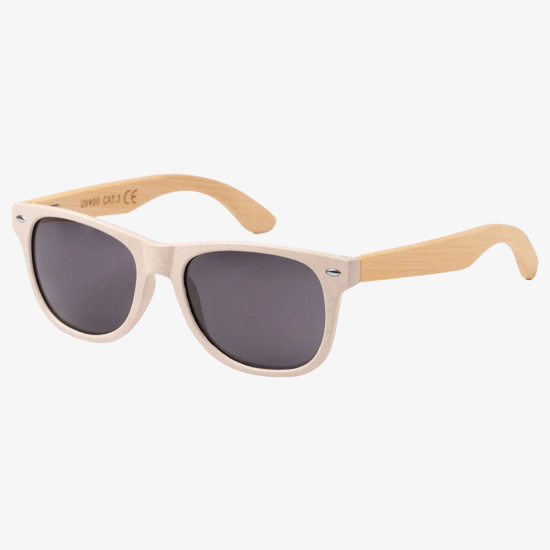 De BOMER zonnebril heeft een montuur van tarwevezel en pootjes van bamboe. De glazen hebben UV400-bescherming. Afmetingen: 14,5 x 4,9 x 3,2 cm.