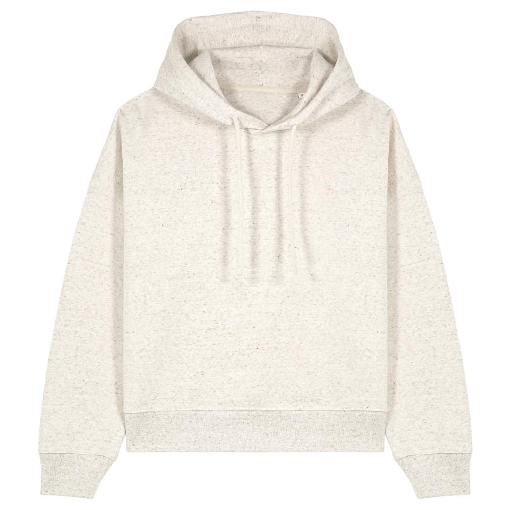 De hoodie sweatshirt voor vrouwen biedt optimale comfort met zijn gepaste mouwen en hangende schouders. De 1x1 ribben aan de hals, de polsen van de mouwen en de onderrand zorgen voor een comfortabele pasvorm. Dubbele naden over alle naden garanteren een vergrote duurzaamheid. Een strook stof binnen in de hals voegt een vleugje verfijning toe, terwijl de halfmaan van stof van hetzelfde materiaal aan de achterkant van de nek extra comfort biedt. Dit sweatshirt is samengesteld uit 100% organische ringgesponnen katoen, met uitzondering van de kleur Heather Haze die 80% organische katoen en 20% gerecycled katoen bevat, ringgesponnen. Dit model is ideaal voor personalisatie met borduurwerk, waardoor u uw logo of visueel kunt toevoegen voor een effectieve communicatie.