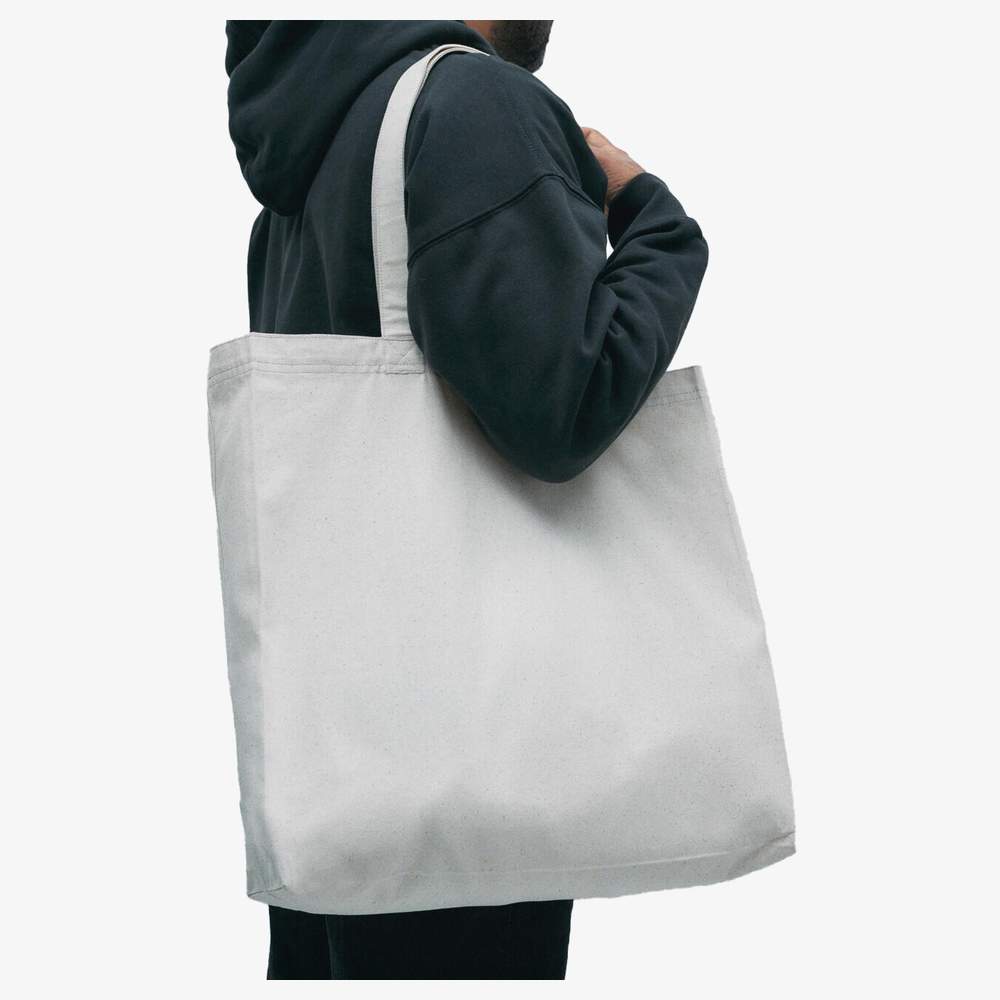 Deze grote tote is ontworpen met een geprofileerde bodem voor structuur en volume. Het is uitgerust met twee brede handvatten in katoenen canvas en heeft een open ontwerp bovenop. Er is een binnenste opslagzak geïntegreerd, afgesloten met een metalen drukknop. De naadwerkzaamheden omvatten dubbele naad en enkelnaad, evenals afgeklapte zijnaad en versterkingen voor verbeterde duurzaamheid. De handvatten zijn ook versterkt voor betere weerstand.
