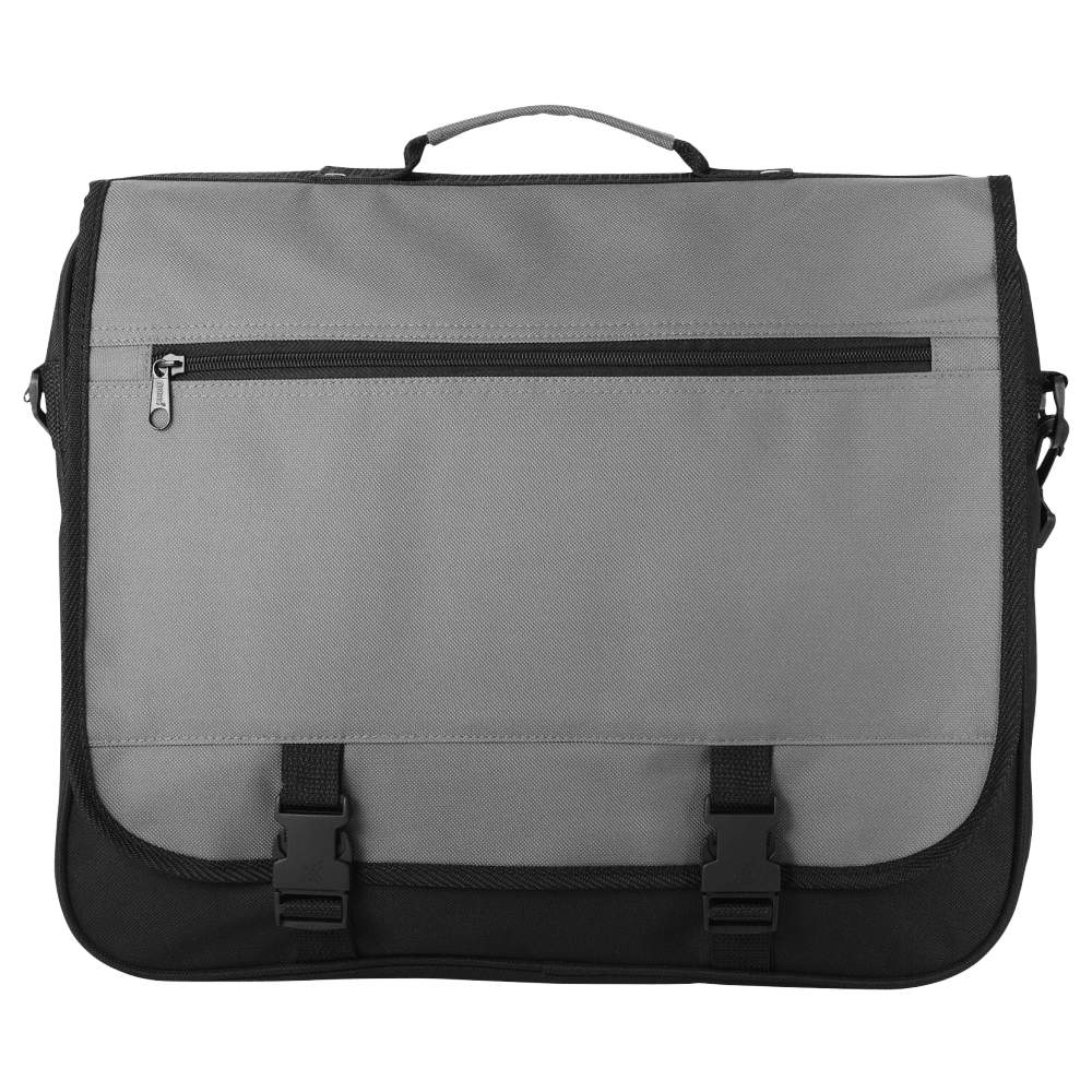 Tas met verstellbare schouderband, flap met sluiting door loop, gesealde zak in de flap, hoofdcompartiment en meerdere open zaken onder de flap. Afmetingen: 40 x 10 x 33 cm. Samensstelling: 100% polyester.