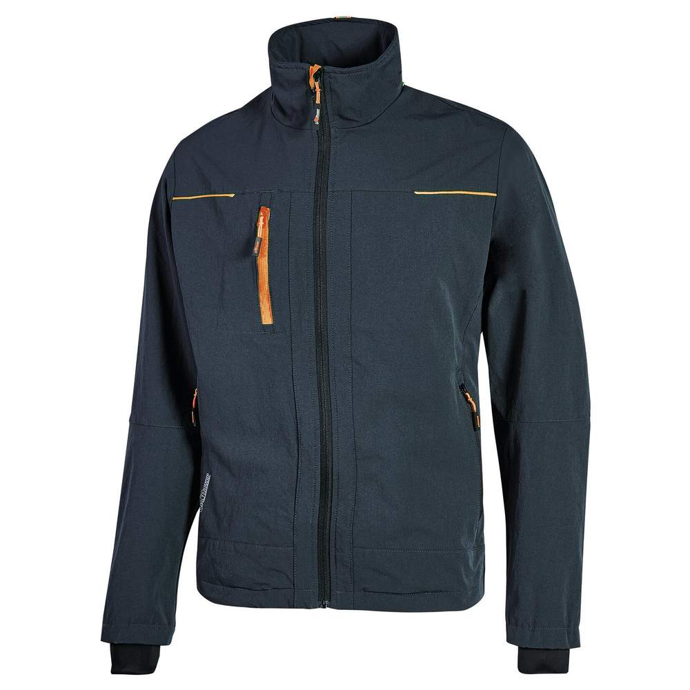 Comfortabele ademende jas voor mannen, ontworpen om optimale comfort te bieden. Het is gemaakt van U-4 stof, die een zachte aanvoeling biedt, afstotende eigenschappen en verhoogde ademendheid. Het is uitgerust met twee handige voorzakken en een borstzak voor een mobiele telefoon, beveiligd met een zip. De binnenkant beschikt over twee grote zakken voor extra opslag. De aanpasbare terugtrekbare kap biedt extra bescherming, terwijl de windbestendige uitrekbare polsen warmte behouden. Reflecterende inzetstukken verbeteren de zichtbaarheid in omstandigheden met weinig licht. Een aanpasbare trekkordel in de zak laat toe de pasvorm aan te passen. De verlengde rug biedt extra bescherming en verhoogt het comfort. Een rode reflecterende strook is aanwezig op de kraag en de rug voor een verhoogde zichtbaarheid.