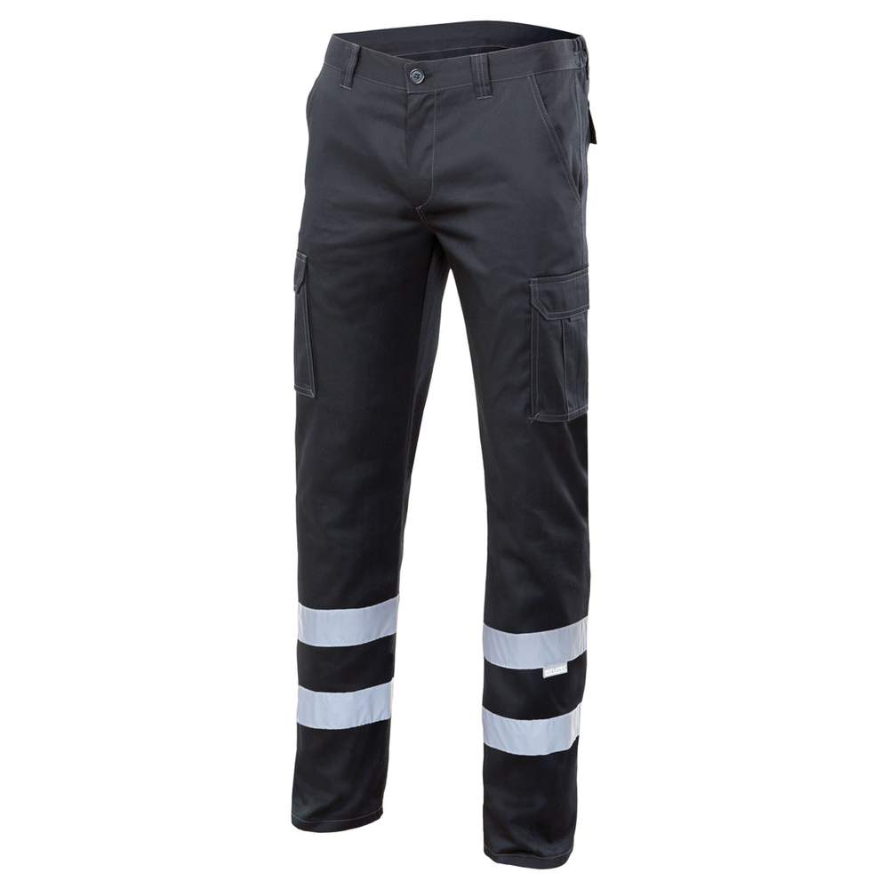 Stretchbroek met meervoudige zakken met reflecterende strepen. Dit model combineert comfort en functionaliteit door zijn doordachte ontwerp en zijn vele zakken. Het is geschikt voor diverse werkomgevingen die een praktische en duurzame kledingstuk vereisen. De centrale ritssluiting met knop biedt een goede grip, terwijl de reflecterende strepen de zichtbaarheid verbeteren in omstandigheden met weinig licht. De contrastrijke naden voegen een esthetische touch toe. De elastische taille biedt extra comfort. De zes zakken bieden optimale opslag van gereedschap en accessoires: 2 Franse zakken, 2 zakken met flap en zelfhechtende streep met glijders, en 2 achterste versterkte zakken met flap en zelfhechtende streep.