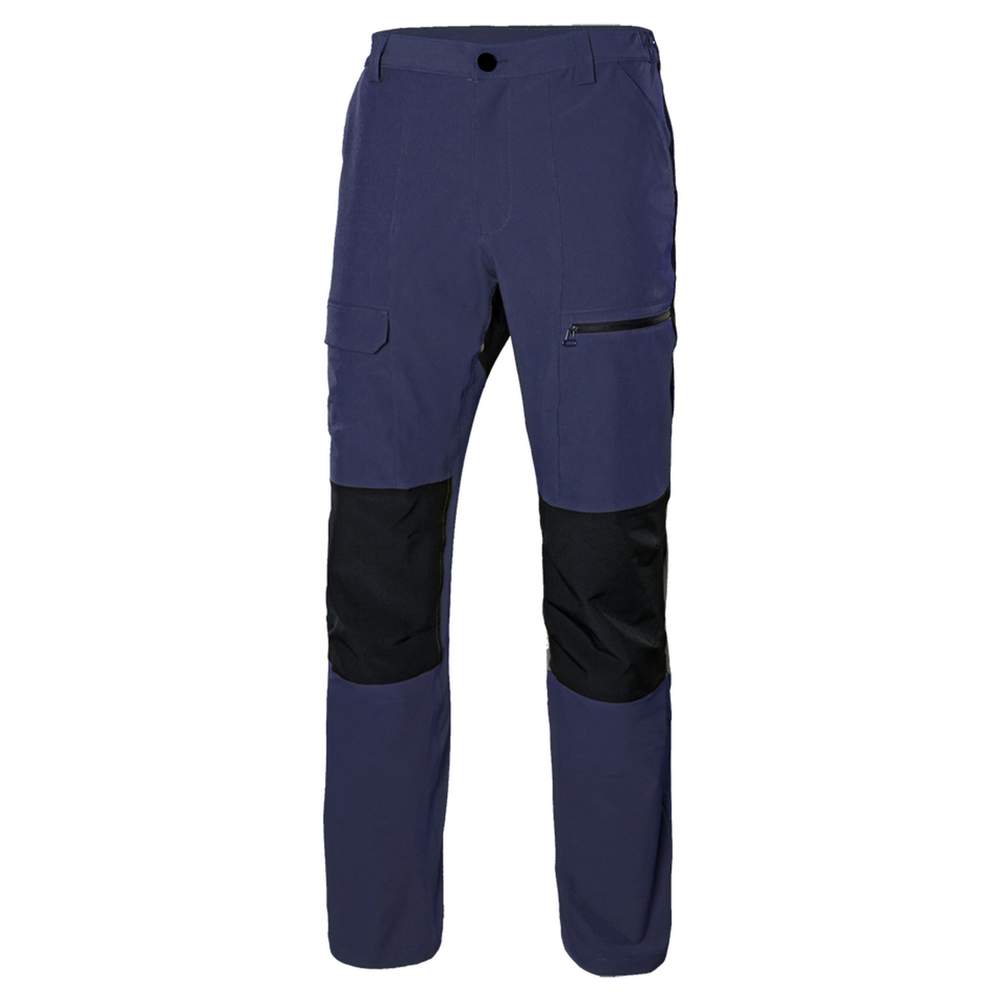Stretch werkbroek ontworpen voor trekking en activiteiten die veel bewegingsvrijheid vereisen. Biedt optimaal comfort dankzij de slanke passvorm en zijelastische taille. Ontworpen met een knoopgesloten sluiting met rits en dubbele naad voor extra duurzaamheid. De broek beschikt over zes praktische zakken: twee Italiaanse zakken, een zak met klap en drukknop op het rechterbeen, een zak met omgekeerde rits op het linkerbeen en twee achterzakken met omgekeerde rits.