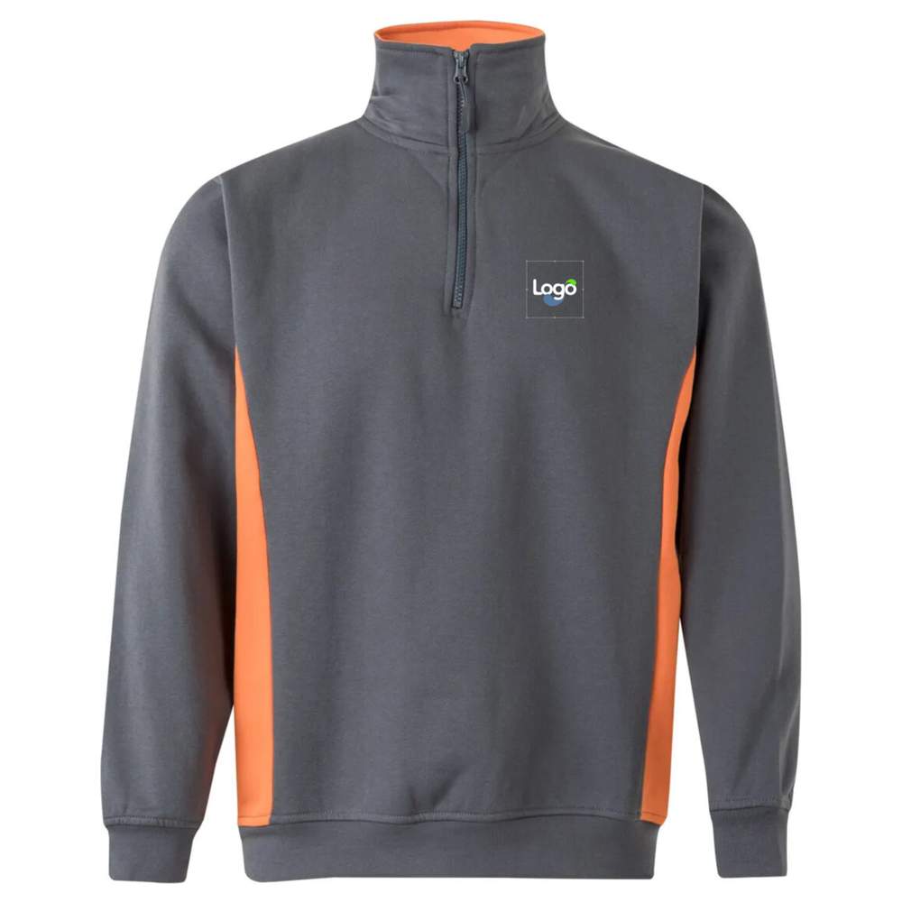 Tweekleurige gezippte sweat 105704 op maat - Grey orange