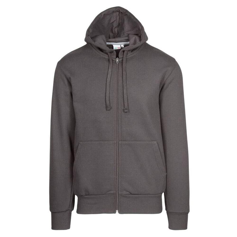 Gesloten sweatshirt met kap, ontworpen voor dagelijks comfort. Het heeft een klassieke buisvormige pasvorm, een praktische kangoeroezak en ribbordjes aan de polsen en onderkant voor een optimale pasvorm. De gedubleerde kap biedt extra bescherming. Dit kledingstuk is gemaakt in Italië. De compositie van katoen en polyester zorgt voor een balans tussen zachtheid en duurzaamheid.